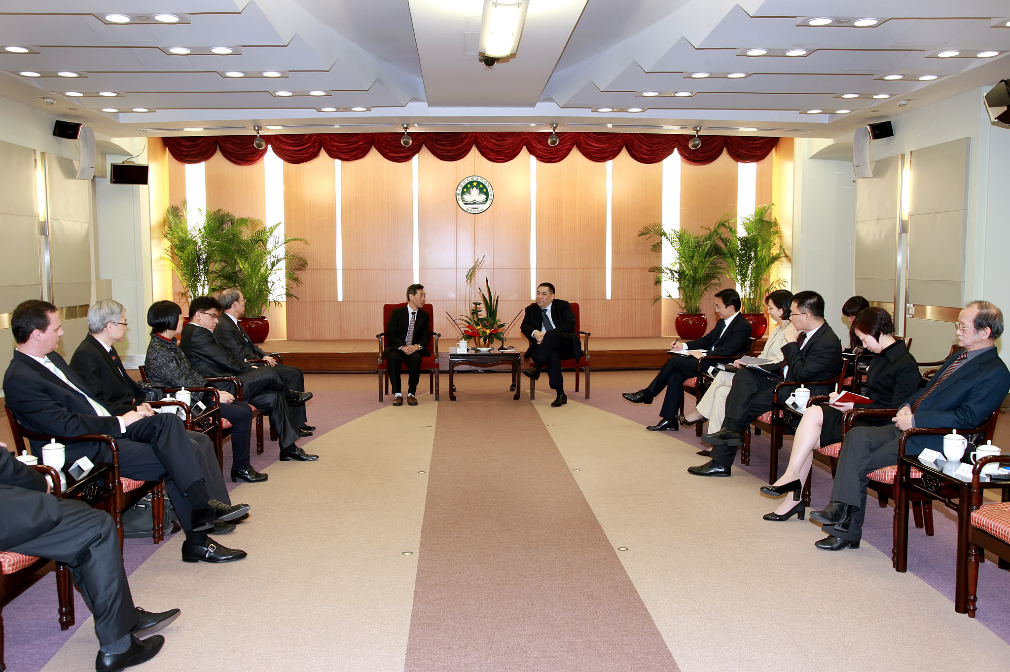 行政長官辦公室主任譚俊榮、行政會秘書長兼行政長官辦公室顧問柯嵐、新聞局局長陳致平陪同會見。澳門傳媒工作者組織福利會成員大會主席余榮讓等多位領導層成員參加會面並提出意見。