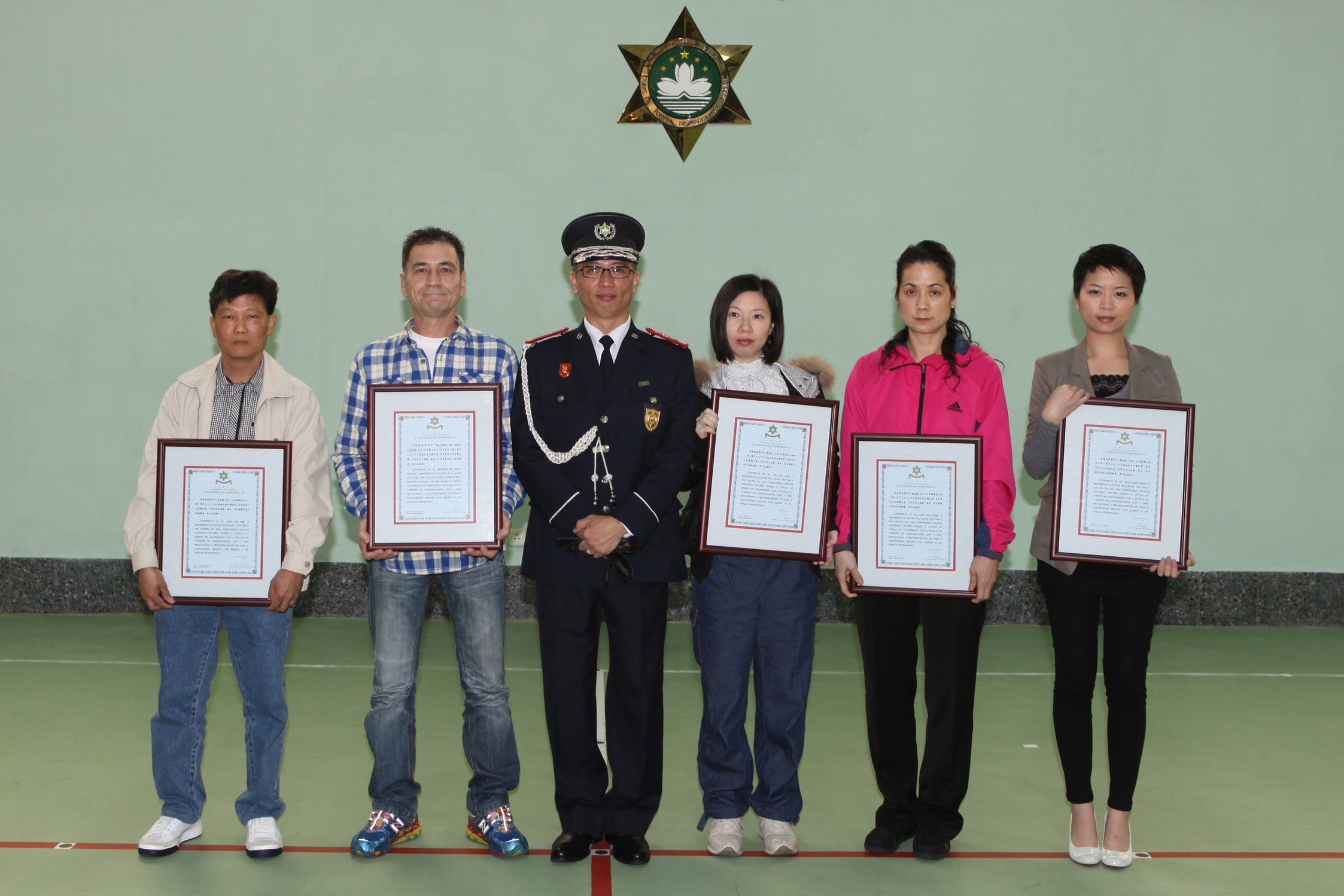 開放日活動由莊嚴的嘉獎儀式展開,各部門主管及警官均有出席。儀式由本局李小平局長主持,今年共有240名警務人員憑傑出表現而獲嘉獎,為確保不影響正常的警務工作,不同級別獲嘉獎的人員由同級較資深人員代領。另外,本年共有6位(其中一位因事未能出席儀式)好市民獲頒發表揚證書,以嘉許他們在過去一年以崇高的公民意識協助本局打擊罪案;他們分別在盜竊案中挺身而出,協助本局將不法份子繩之於法,以及一宗“路不拾遺”中主動協助本局將巨款交還失主。本局冀藉此鼓勵市民協助防罪滅罪,提倡警民合作之精神。