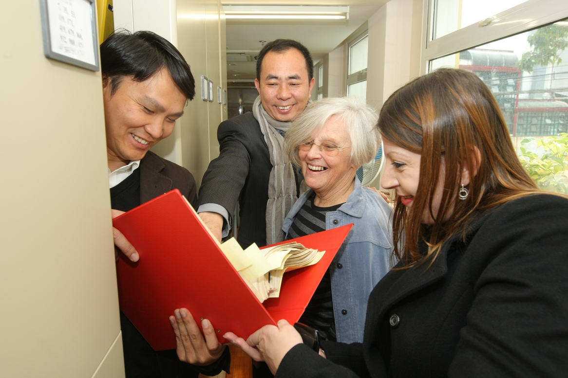 菲基立萊昂諾爾在吳衛鳴及同事們帶領下參觀現在的文化局大樓及文化財產廳工作環境,她喜見文化局不斷發展,並對目前本澳的文化遺產保護工作感到相當滿意,她認為巿民對本澳文物保護的意識及參與度均有提升。今次她從葡國抵澳,對此行能夠重遊澳門及與丈夫菲基立過去的工作伙伴見面,感到欣慰,文化局同事更拿出菲基立在文化財產廳擔任建築師時所親繕的圖則讓她重溫。