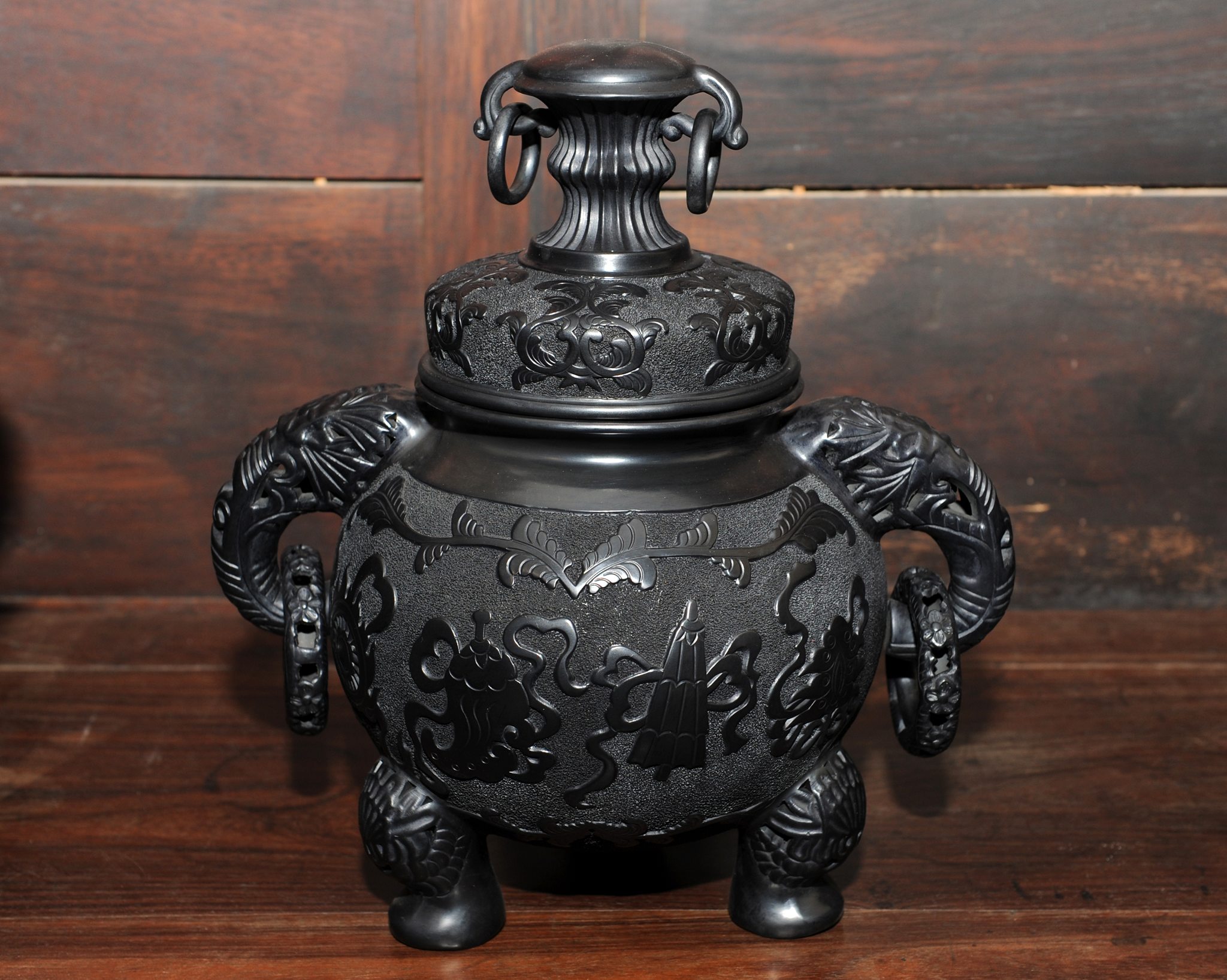 張國慶為山東龍山人,山東省工藝美術大師,於上世紀八十年代投身龍山黑陶藝術事業,通過借鑒前人經驗,並根據出土文物及有關資料介紹,摸索試驗,最終成功恢復了龍山文化時期的拉坯蛋殼陶這一陶藝巔峰之作,同時注入現代造型和文飾雕刻,作品多次榮獲重要獎項。