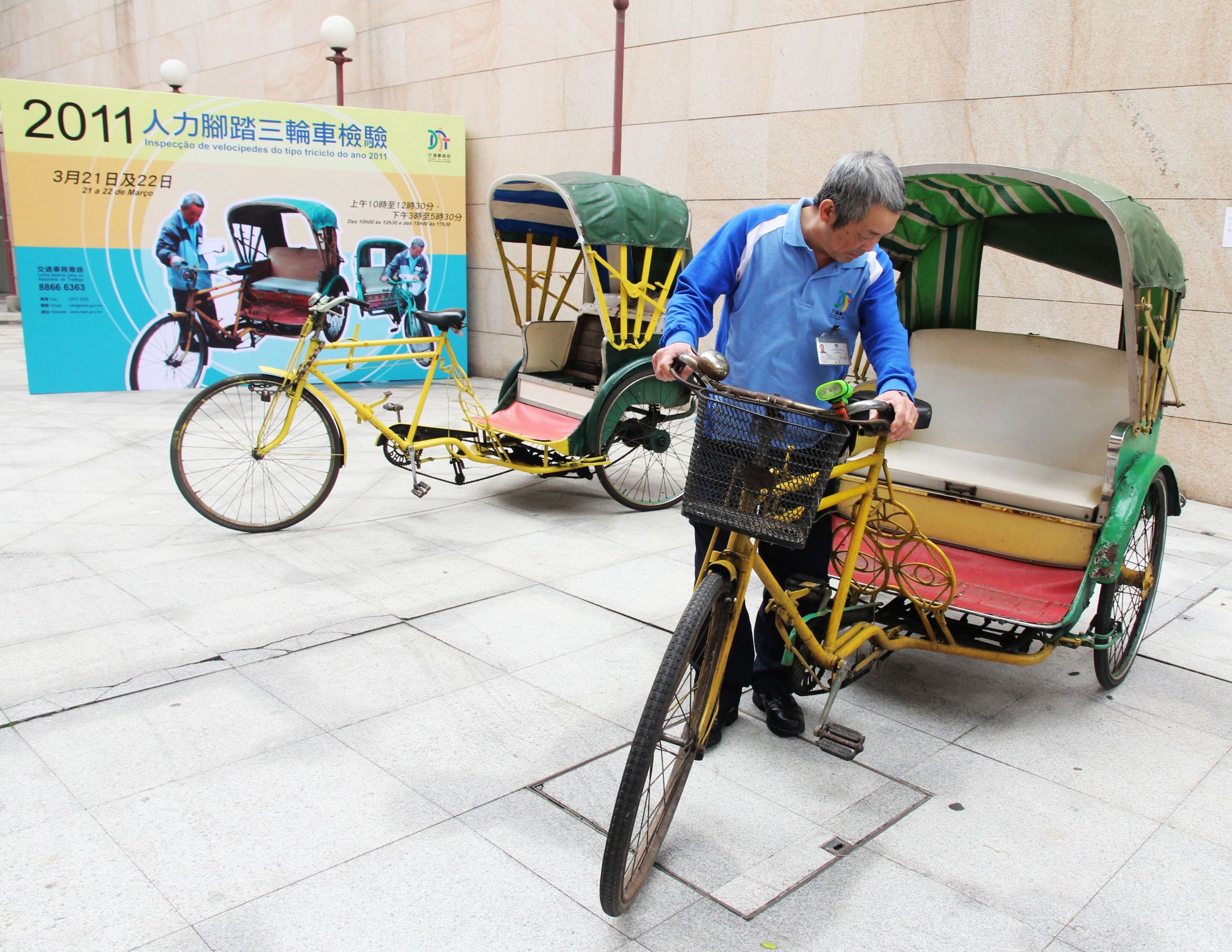 根據交通事務局的登記資料顯示,本澳共有69台由私人經營的人力腳踏三輪車,為確保腳踏三輪車在本澳公共道路上的行駛安全,交通事務局每年均會對行駛中的上述三輪車進行檢驗,檢驗項目包括車前燈、車後燈、擋泥板、制動器、聲響器、反射器、註冊號牌、車輪尺碼規格及狀態。本年度檢驗工作已本月21及22日假於綜藝館旁舉行,期間共有56台腳踏三輪車前來接受檢驗,當中55台經檢驗合格獲發給2011年檢驗合格證及新登記摺;只有1台腳踏三輪車因擅自更換車牌註冊編號不能通過檢驗。另外有13台腳踏三輪車沒有出席檢驗,交通事務局將發函通知三輪車工會及有關三輪車登記人,如有需要可前往交通事務局汽車檢驗中心接受補驗。