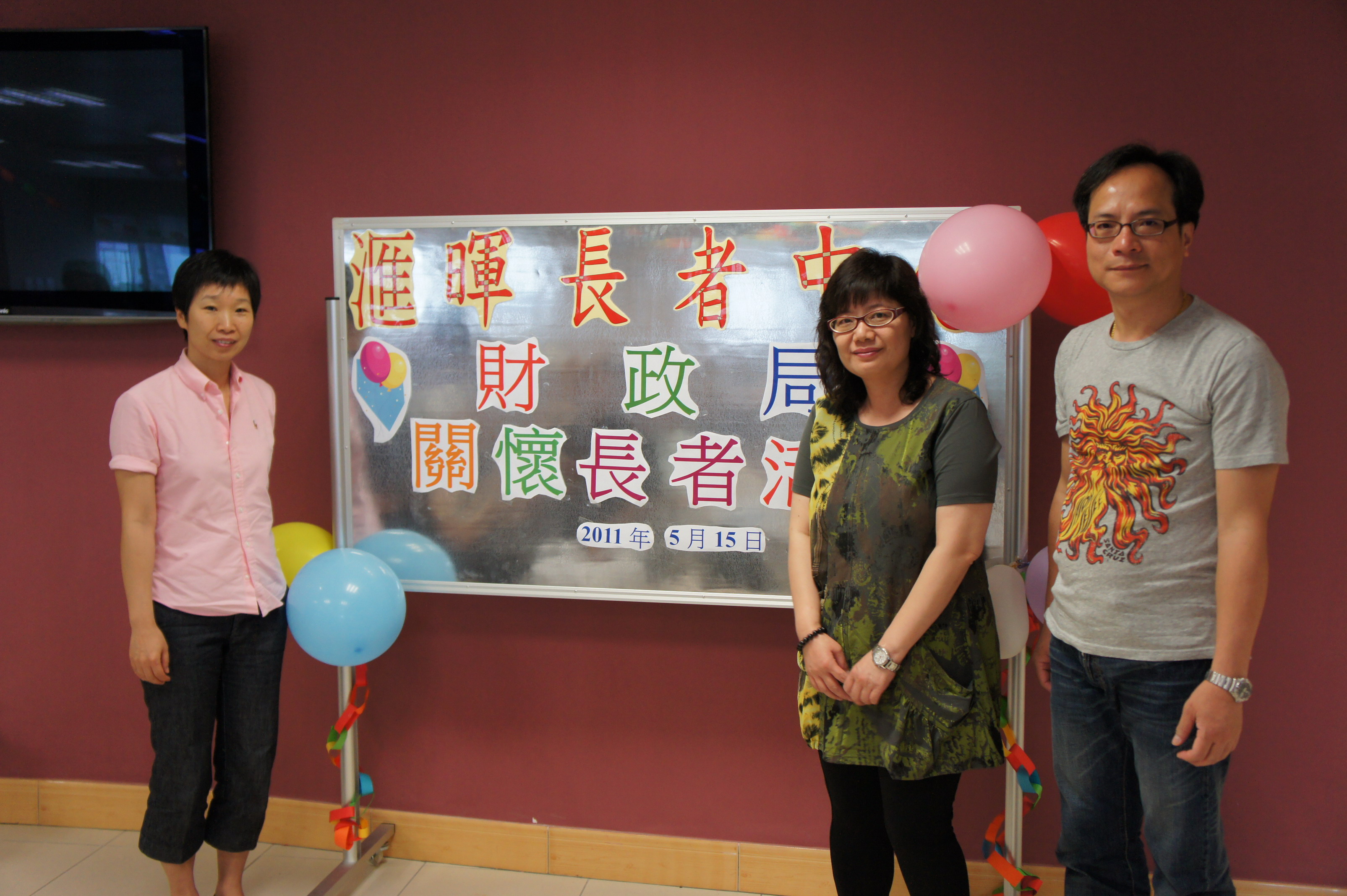 財政局局長江麗莉、兩位副局長容光亮及鍾聖心帶領員工及家屬一行廿多人於本年5月15日(星期日)早上探訪了附屬於“澳門明愛”之“匯暉長者中心”;此中心是一所附設在筷子基社會房屋快富樓七樓(長者宿舍)內的長者日間中心。活動由財政局康體會及匯暉長者中心負責籌辦。