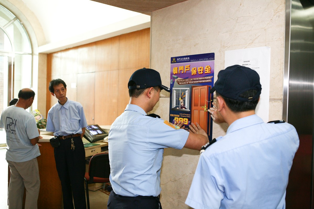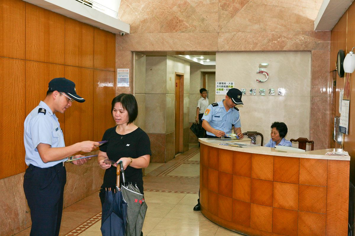 據本局統計資料顯示,本年首五個月,治安警察局接報的寓所盜竊案件累計348宗,比去年同期增加30宗,增幅超過百分之八。為此,本局走入社區進行大廈滅罪宣傳工作,冀藉此提高居民防罪意識,協力打擊相關罪案。