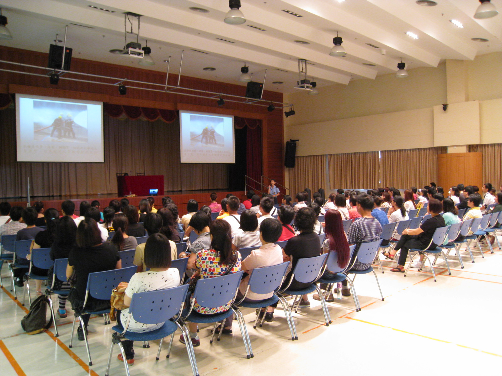 社會工作局與消防局合辦一連兩場的「防火安全講座與滅火筒試用訓練」,早前假鏡湖醫院運動綜合禮堂進行,全澳149間社會服務設施的負責人、員工以及專責防火安全事務的人員,連同社會工作局員工逾220多人參與培訓。