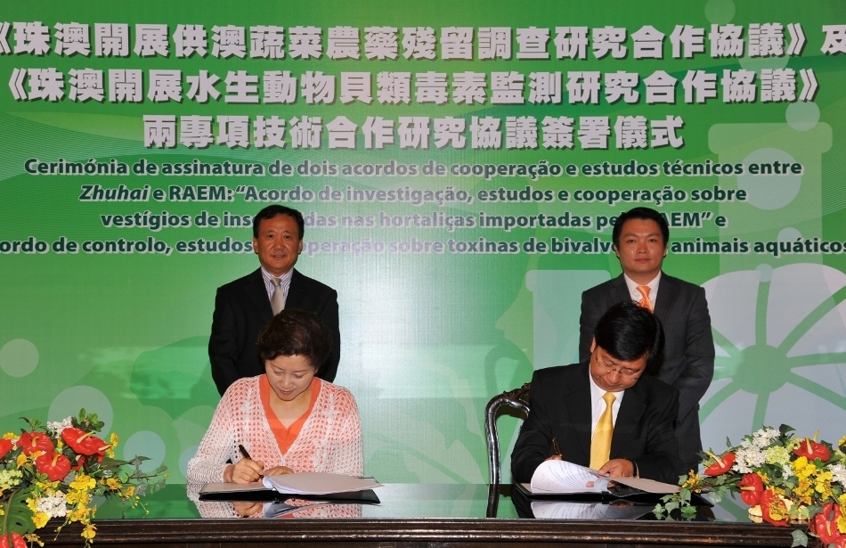 民政總署日前與珠海出入境檢驗檢疫局簽署“珠澳開展水生動物貝類毒素監測研究合作協議”及“珠澳開展供澳蔬菜農藥殘留調查研究合作協議”,以進一步加強澳珠兩地在食品安全方面的科研合作和交流。