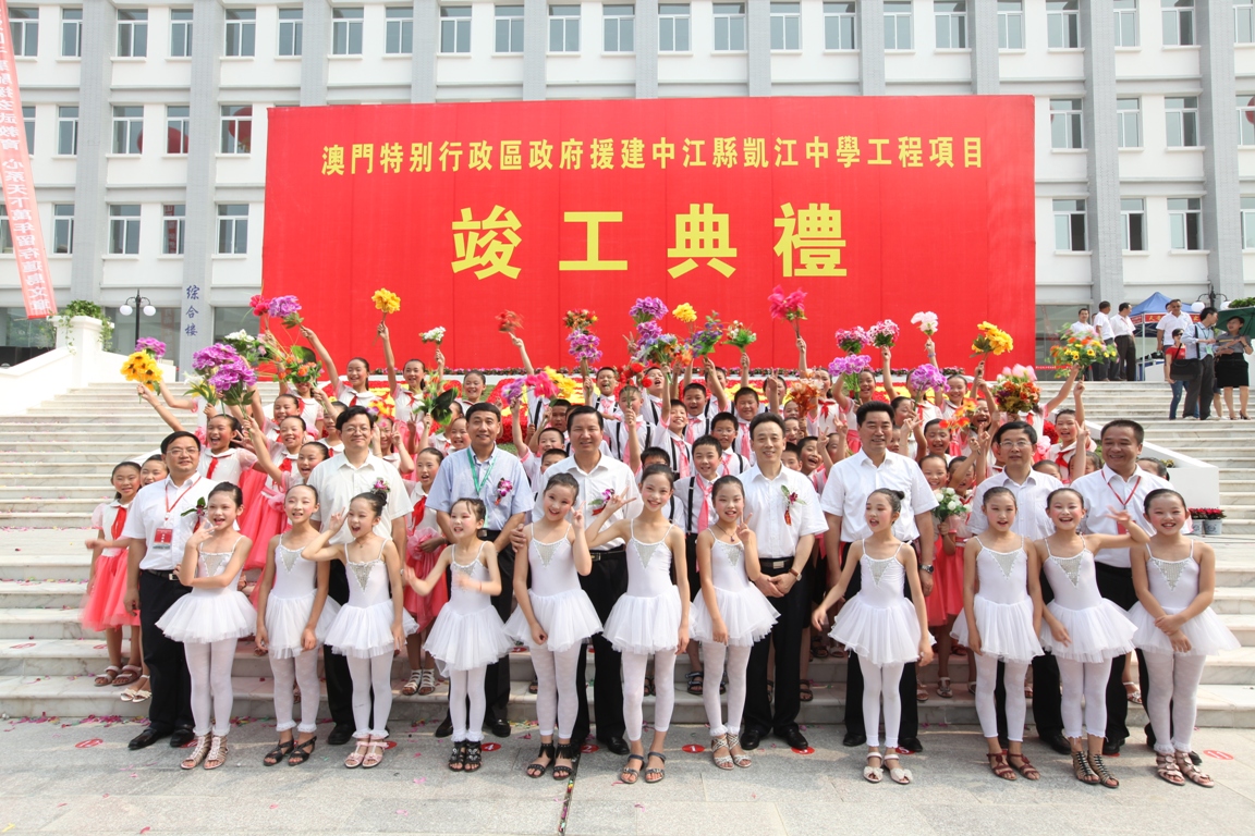 是次考察項目包括了醫院、學校、體育活動中心、文化館及路橋等,除了德陽市中江縣凱江中學已落成外,其他項目預計於10月至明年中相繼完工(見附表)。於19日舉行的凱江中學竣工儀式,除了澳門特區考察團外,四川省政府魏宏常務副省長亦率領相關官員出席。儀式簡單而隆重,洋溢一片歡欣氣氛。參與典禮的凱江中學三百名師生對新校舍落成表現興奮,認為新校園為他們帶來新生活、新希望,並以“感恩自強”表達對澳門同胞的感謝,承諾努力學習,自強不息。據悉,當地人都知道凱江中學是澳門特區政府出資援建,所以他們都稱之為“澳門中學”。這個稱謂肯定了特區政府參與重建的正面和深遠意義,也反映了援建工作令澳川雙方人民建立了深厚的感情。