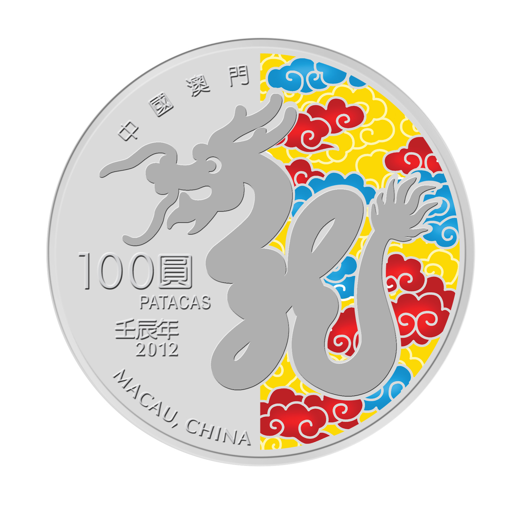 澳門金融管理局(AMCM)於2008 年推出全新系列之農曆年紀念幣,龍年紀念幣為系列的第五套紀念幣。三款紀念幣之設計圖案相同,但色調不一;紀念幣正面鑄有中國神龍的圖案,背面則為議事亭前地的圖案。此全新系列之農曆年紀念幣經金融管理局委託以精巧工藝馳名的新加坡造幣廠鑄造。