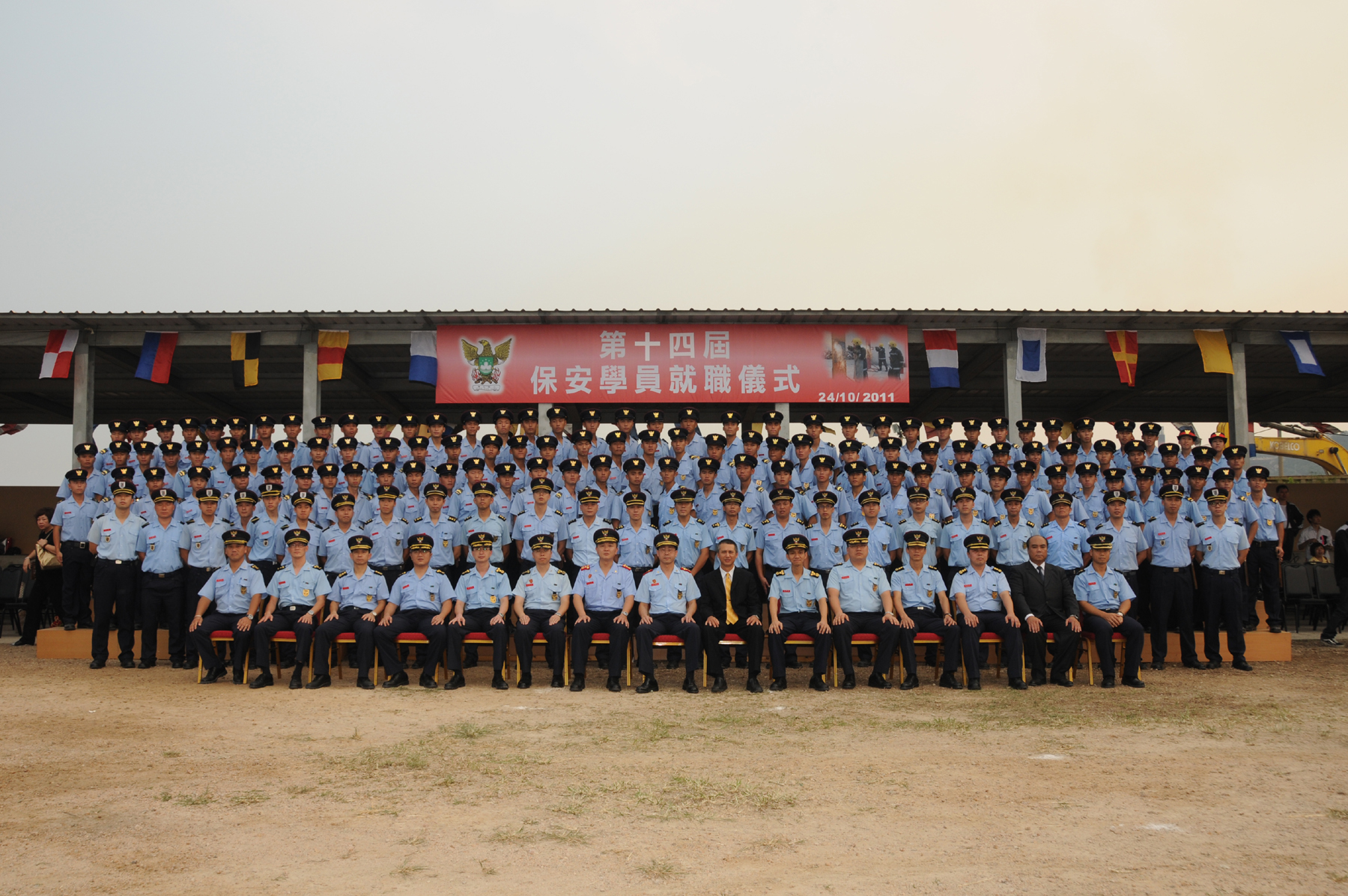 保安學員培訓課程為期約八個多月,分為基礎訓練、專業訓練及實習三個階段,主要學習消防技術專業知識,其中包括:滅火技術、危險及化學產品、通訊、急救、防火安全規章、保安部隊軍事化人員通則及公共行政工作人員通則等。出席儀式人士還包括學員家屬,合共400百多人。