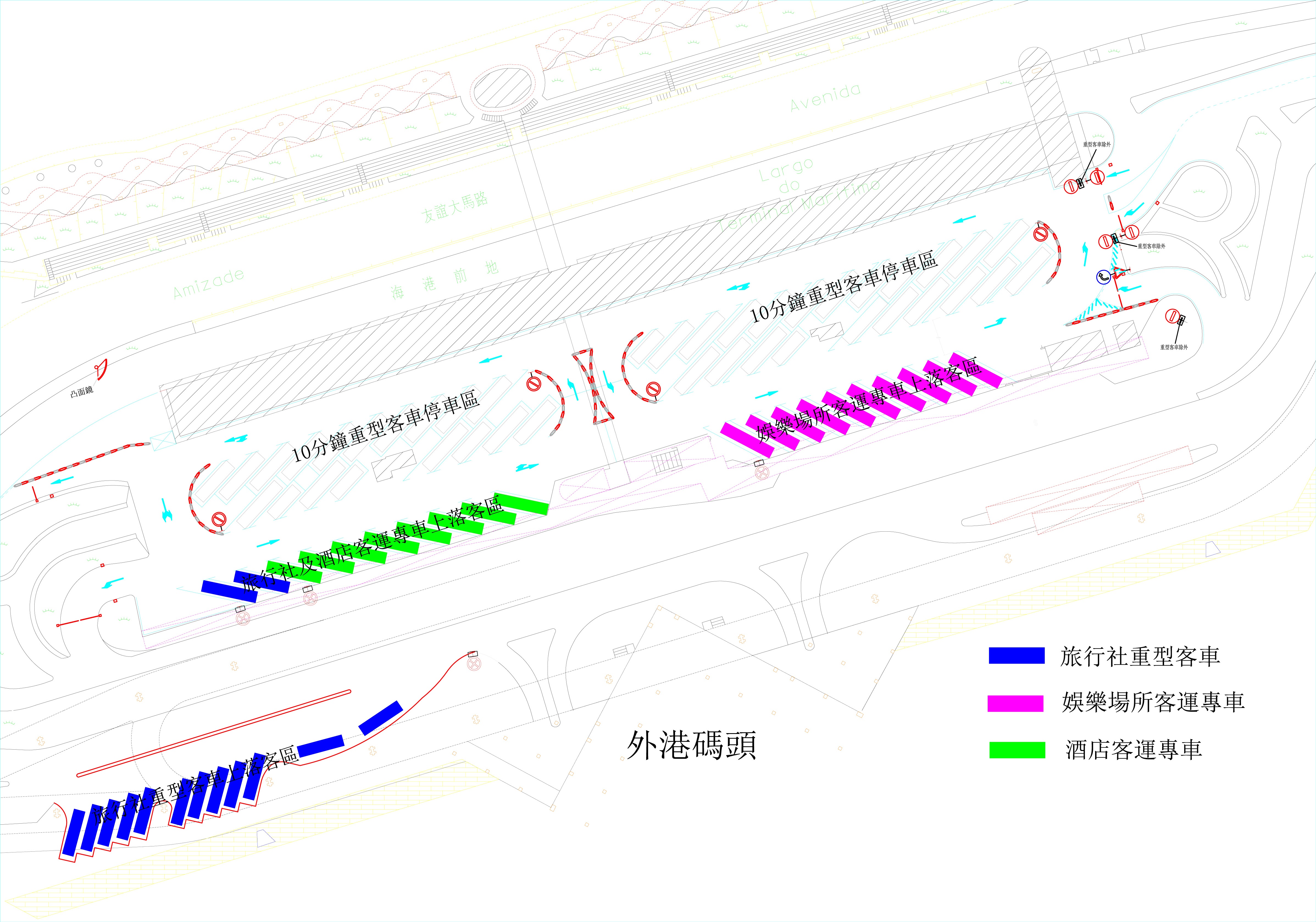 外港碼頭是整治口岸旅遊巴停泊區的試點,待整治工作完成後,交通事務局將評估措施成效,研究對其他口岸的旅遊巴停泊區作出整治,以優化口岸的交通環境。