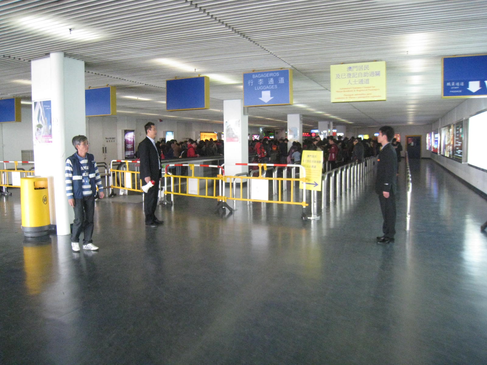 在人流高峰時段,持護照旅客最長等候驗證過關時間約需1小時左右,治安警察局出入境事務廳隨即抽調人手增開驗證通道,縮短通關時間,有效疏導旅客。而在非繁忙時段的等候時間則只需10至15分鐘。