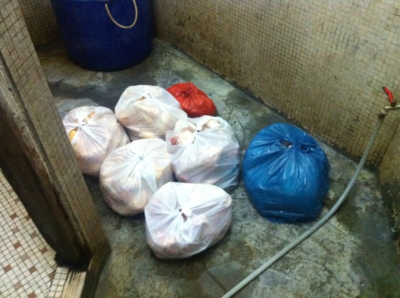 於今天早上約10時30分,關員在關閘馬路如意閣大廈商場內進行監視,發現部份回澳水客將膠袋包裹之物品放在上址商場內的男厠後便離開。其後,有一名林姓男子,年約53歲的澳門居民,在上述地點運走該批物品時﹐海關人員立即採取行動,檢獲一些未經檢疫的家禽。調查期間,該名男子聲稱這批未經檢疫的家禽是其致電內地一雞販購買的,並於今日早上安排水客以螞蟻搬家的形式帶回本澳。而其利用該厠所進行收集及稍作清洗家禽後,準備供應澳門市內的食肆作為食材。經點算後,海關檢獲未經檢疫之家禽有﹕己宰鮮雞53隻,重67公斤、己宰鴨5隻、重15公斤及己宰乳鴿20隻,共91斤。