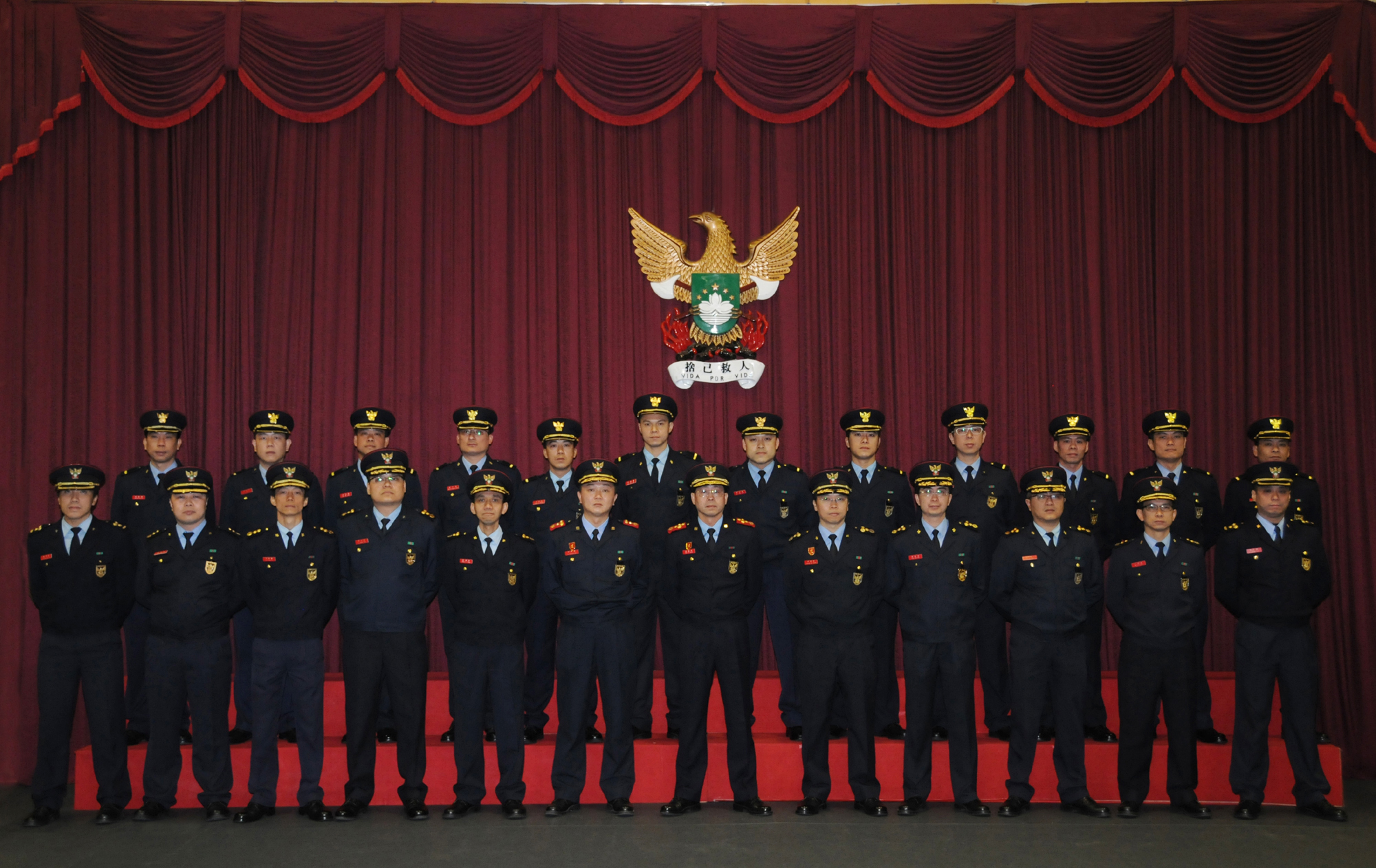 消防局官員與12名晉升副消防區長合照