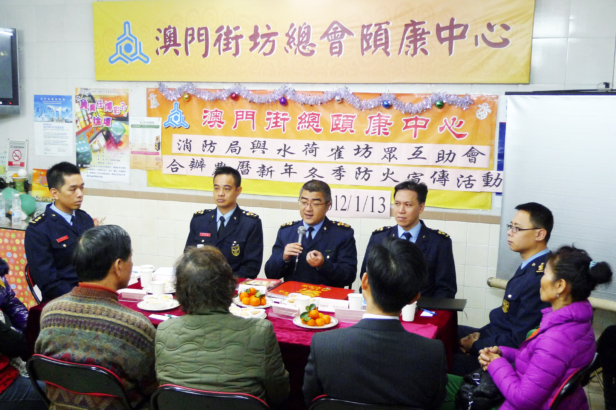 是次防火宣傳活動的內容包括消防局官於1月12日到“三巴門坊眾互助會”以及於1月13日到“水荷雀坊眾互助會”進行拜訪,並於當日為居民舉辦防火講座,共有120名居民出席。
