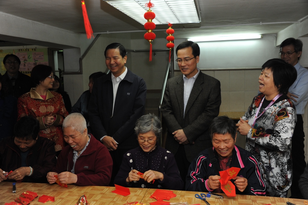 社會文化司司長張裕日前落區探訪多所社會服務設施,包括托兒所、老人中心、護養院、青年中心及婦女服務中心等。中午並於旅遊塔與百多名殘疾人士及其家屬午膳。席間,張裕及社會工作局局長容光耀與視障人士樂隊合照,並向出席者致以節日問候和祝福。