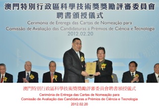 特區政府於去年三月份頒佈了《科學技術獎勵規章》,透過獎勵在澳門科學技術活動中作出貢獻的人士,充份調動本地科學技術工作者的積極性和創造性,特別是鼓勵年輕人參與科研工作,加快本澳科學技術事業的發展。為了保證評審的準確、公正與公平,特區政府於去年十一月份委任了上述十一位來自本澳、内地、香港和台灣等地,在科學、技術及創新領域被公認爲傑出的人士組成獎勵評審委員會。