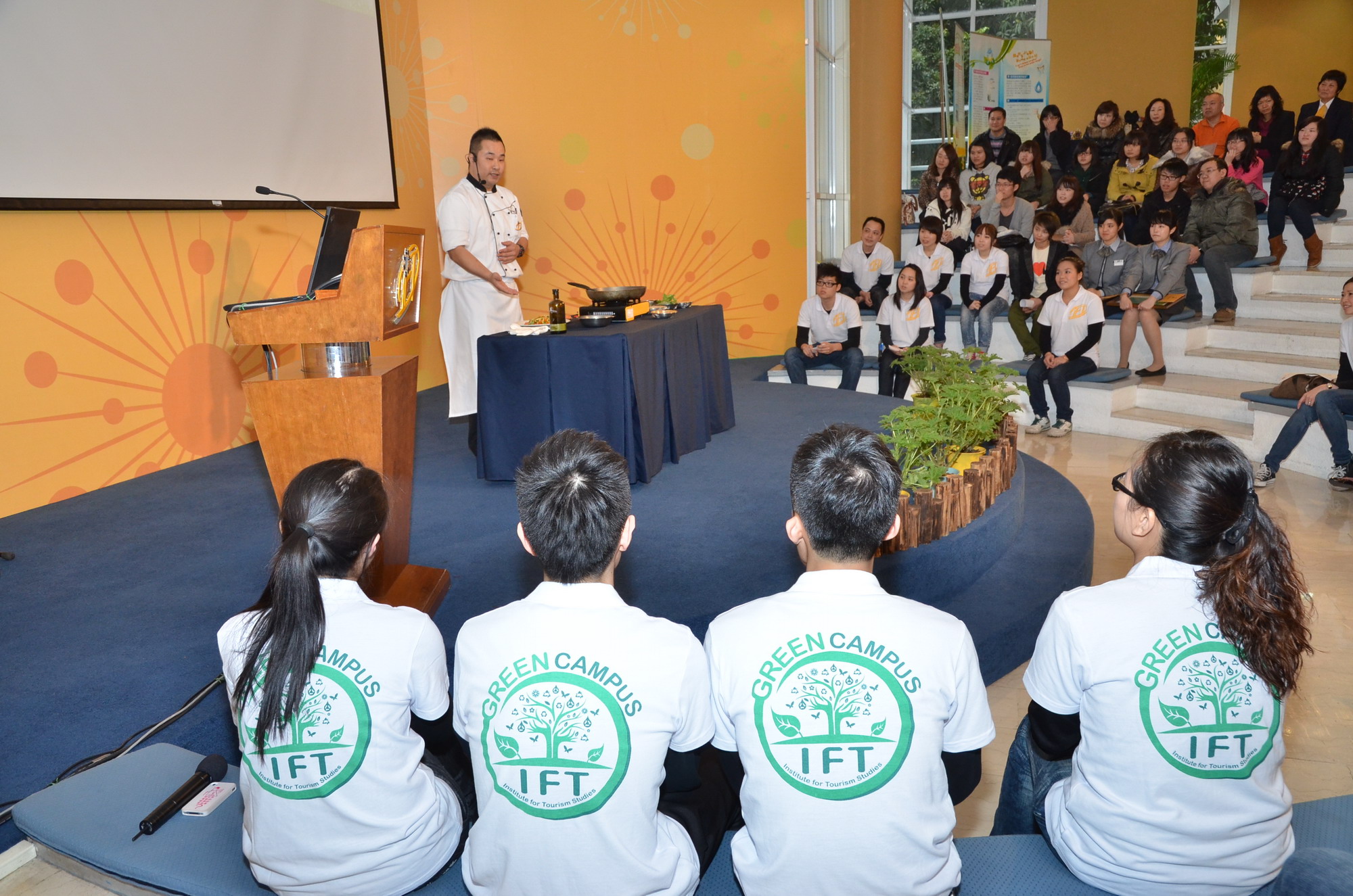 開幕儀式上,黃竹君表示學院的環保工作多管齊下,在校園內採用多項環保措施,以達至減省資源消耗的目的,措施包括:安裝餘熱回收系統把空調系統產生的熱能轉化為熱水的能源;設置太陽能光伏板轉化光能為電能以減少耗電量及二氧化碳排放;行政電子化減少用紙量;使用節能燈具;推行廢物分類回收計劃;學院更是本澳率先推行廚餘回收的高等院校,將廚餘分解為有機肥料,提高種植蔬果的質量及減少對環境造成的污染。廚餘計劃推出至今成效良好,而且得到酒店餐飲業界、中小學、團體等的關注,到學院了解計劃推行時遇到的困難和成效,計劃亦得到多個媒體的報道,引起社會各界對廚餘回收的興趣。學院不吝分享,希望可以把正面的環保訊息帶給大家,一起推動澳門的環保發展。入住學院實習單位望廈迎賓館的客人也十分配合學院的環保政策,甚至提出寶貴意見,讓望廈迎賓館於2007年獲選為澳門環保酒店之一,賓館於2010年更獲頒「澳門環保酒店獎」銀獎。