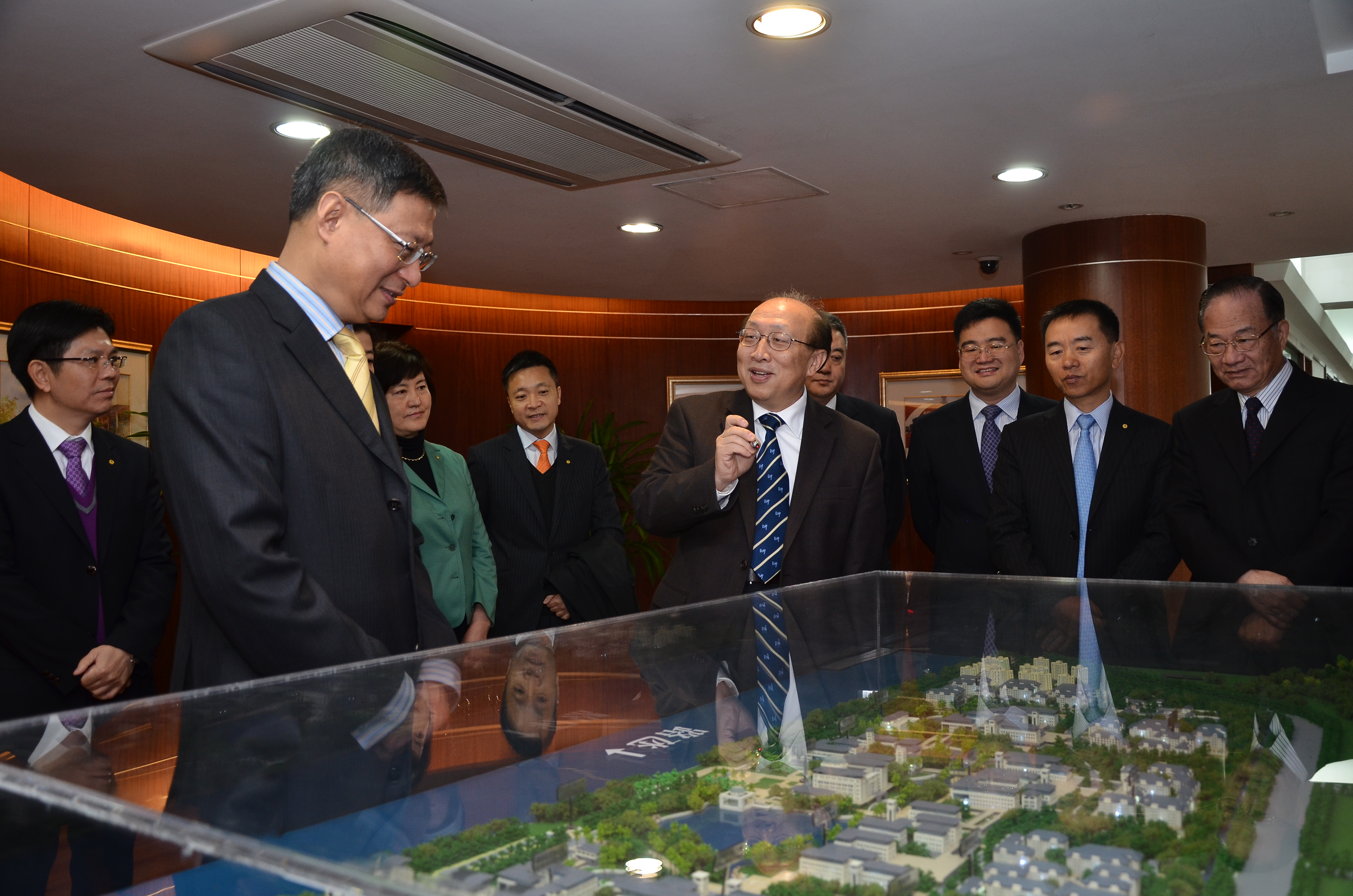 此行,李禮輝一行觀看了澳大新校園整體規劃模型及新校園工程進度短片,以及參觀中藥質量研究國家重點實驗室及大學圖書館。