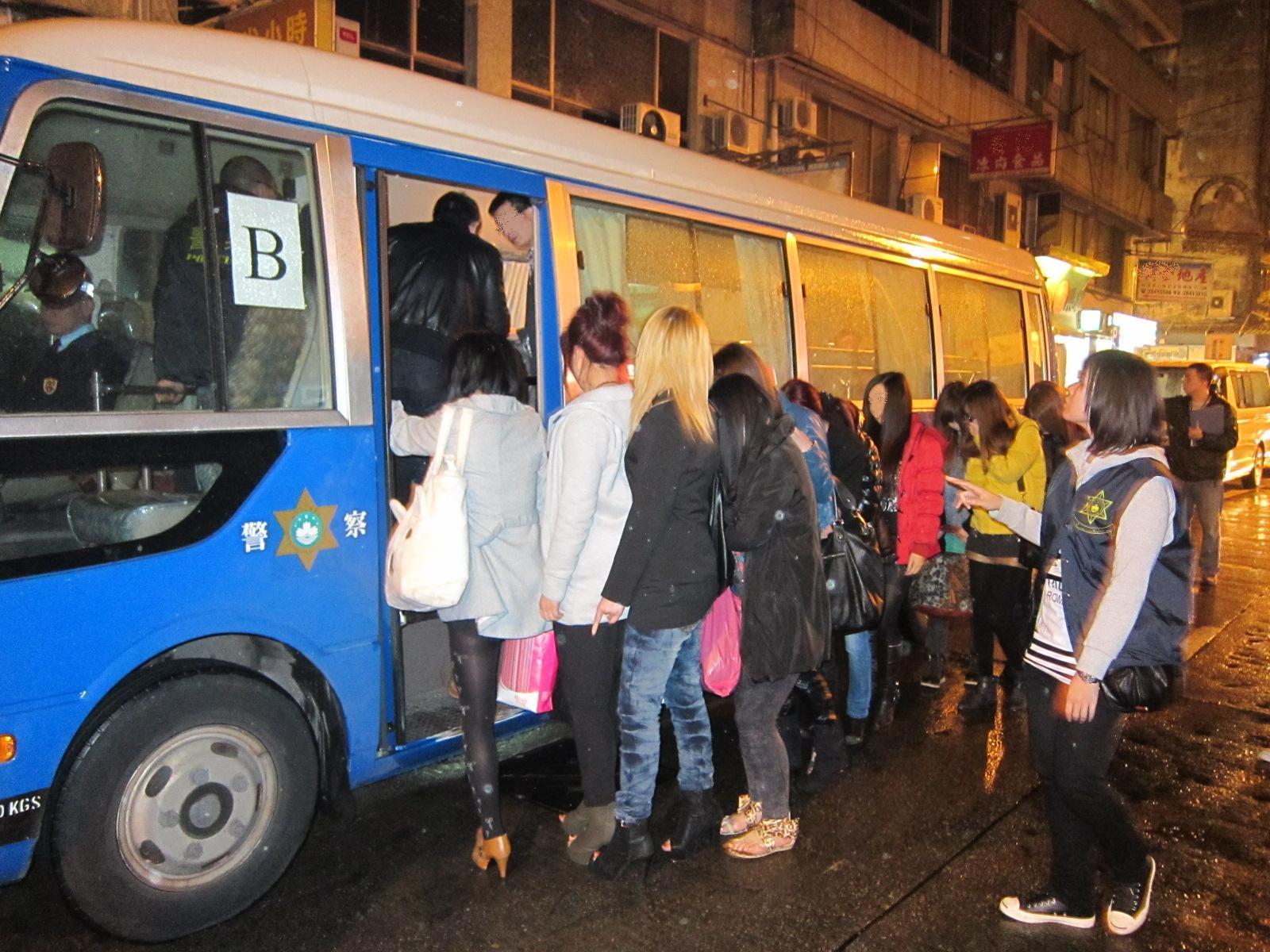 隨後本局人員再根據調查所得,分別前往友誼大馬路及飛南弟街兩個懷疑匿藏販賣人口受害人的單位進行調查。期間在友誼大馬路一單位內發現3男3女(全部來自遼寧,3名男子年齡界乎21至25歲,3名女子年齡界乎20至23歲),並在單住內發現兩本寫有懷疑從事賣淫活動帳目的記事簿以及現金港幣7,800元,3女均否認被販賣及強逼賣淫。根據情報顯示,上述單位內一名翁姓之男子為集團之骨幹成員。同時,在一單位內發現3男4女(全部來自遼寧,3名男子年齡界乎20至24歲,4名女子年齡界乎18至22歲),並在單位內發現一本寫有懷疑從事賣淫活動帳目的記事簿,而該4名女子均供稱在國內先後被人以旅遊及介紹工作等藉口誘騙至本澳強迫賣淫,並安排於新口岸區一桑拿進行賣淫工作,且在賣淫過程中沒有獲得任何金錢報酬,而單位內之3名男子則負責輪流看守或接送有關女子進行賣淫活動。