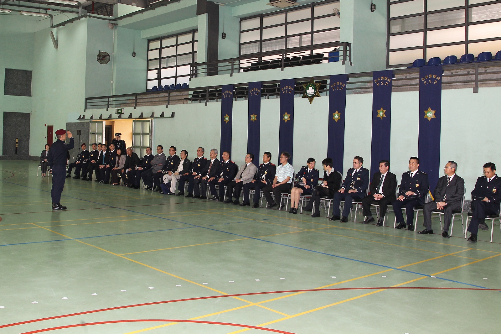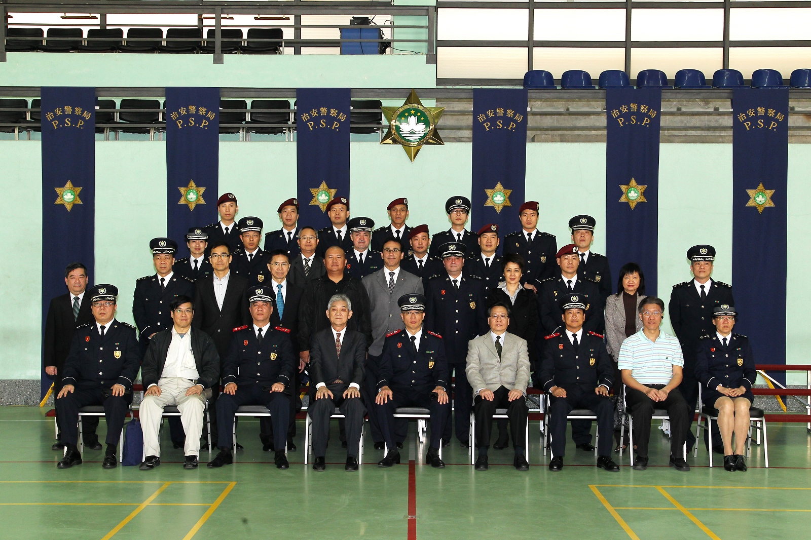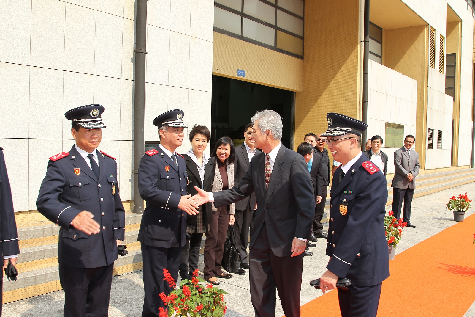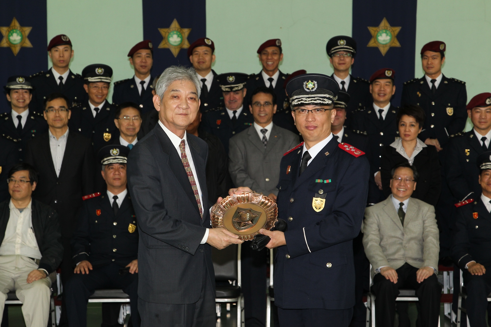 今天上午,立法會劉焯華主席、高開賢第二秘書、吳國昌議員、區錦新議員、高天賜議員、梁安琪議員、陳明金議員、何少金議員、林香生議員、麥瑞權議員、蕭志偉議員、何潤生議員一行12人到達特警隊總部,獲本局李小平局長,毛傲賢副局長、黎錦權副局長及各廳級主管熱情接待。活動先由相關部們代表向議員介紹特警隊、關閘邊境站的日常運作以及治安警察局的最新情況,期間各領導主管與議員們積極交流,聽取寶貴意見。其後一行人繼續參觀警犬隊緝毒、服從及攻擊等演練。此外,特警隊安排了幾個特殊警種的裝備展示以及特種車輛介紹,防暴隊亦同場示範了防暴盾牌的多種陣式應用。多位議員對有關裝備的展示及相關的工作甚感興趣,期間紛紛主動提問,互動氣氛熱烈。