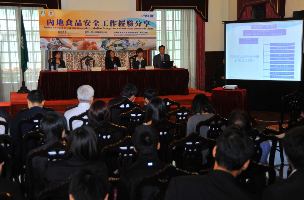 研討會於四月十三日在民政總署大禮堂舉行,與會者包括國家衛生部疾病預防控制中心營養與食品安全所嚴衛星所長、李寧副所長、王竹天副所長、風險評估室李鳳琴主任;中藥質量研究國家重點實驗室主任(澳門大學)、澳門大學中華醫藥研究院院長王一濤教授;民署管委員會譚偉文主席、李偉農副主席、羅永德副主席、伍秉賢委員;以及海關、經濟局、衛生局、旅遊局及消費者委員會等相關政府部門人員。