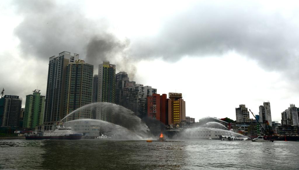 為加強珠澳兩地海事部門應對船舶火警和油污事故方面的合作,港務局今(17)日聯同珠海海事局,在內港航道北端附近(即海港樓對開海面)舉行“2012珠澳海上消防及防油污聯合演練”。