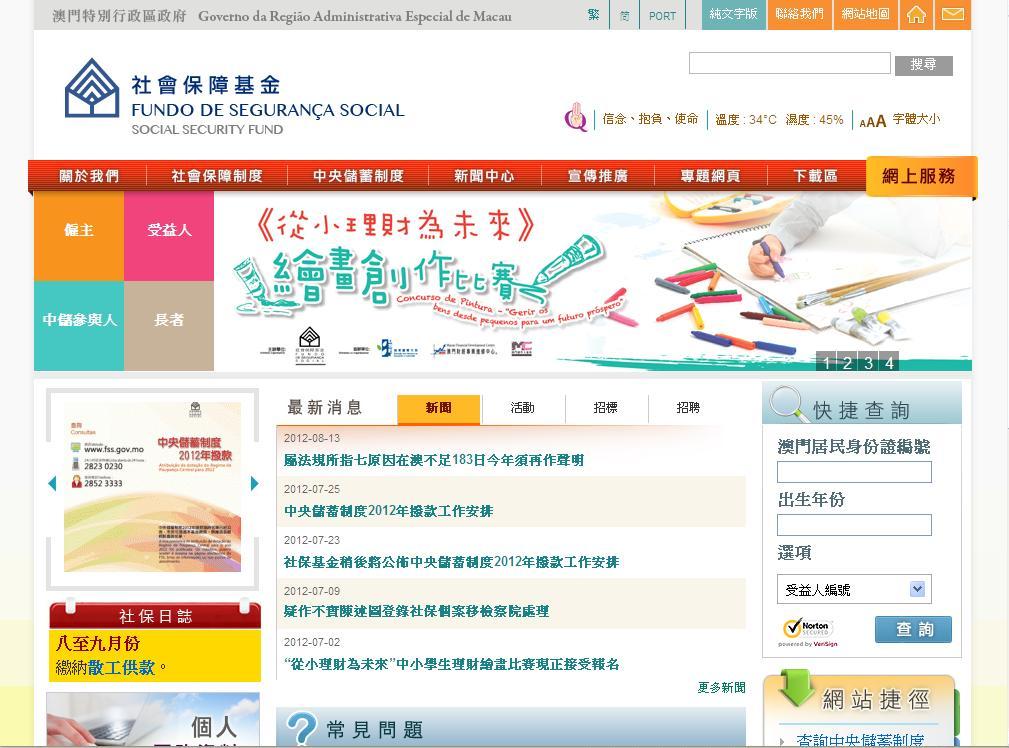 為使市民更方便地透過互聯網了解及查詢各項與個人息息相關的社保資訊,社會保障基金16日(四)起推出新版網頁,網址為www.fss.gov.mo。新網頁增設分眾導覽功能及快捷查詢系統,加上經重新編排的網頁內容,讓資訊更詳盡清晰,搜尋更快捷方便。