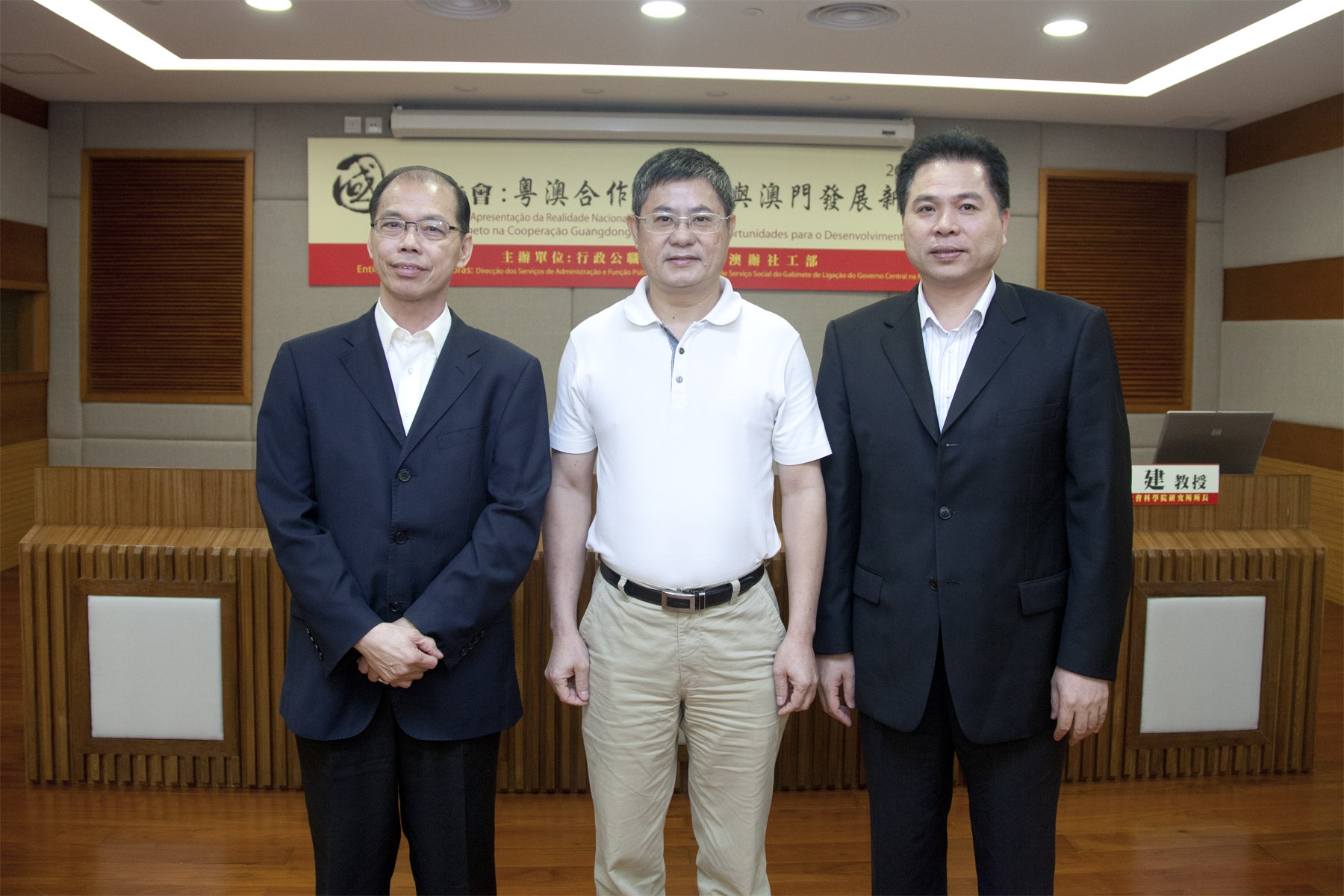 為慶祝中華人民共和國成立63周年,行政公職局於9月27日晚於公務人員培訓中心舉辦國情報告會。報告會的主題為“粵澳合作新進展與澳門發展新機遇”,由廣東省社會科學院陳建研究員主講。陳建研究員在報告中簡要回顧了粵澳合作的歷程,詳細講解了粵澳合作的機制和粵澳合作框架協議的主要內容及進展情況,從國際、國內經濟大背景角度闡釋了廣東發展轉型的措施和任務,並著重分析了澳門發展面臨的新機遇。