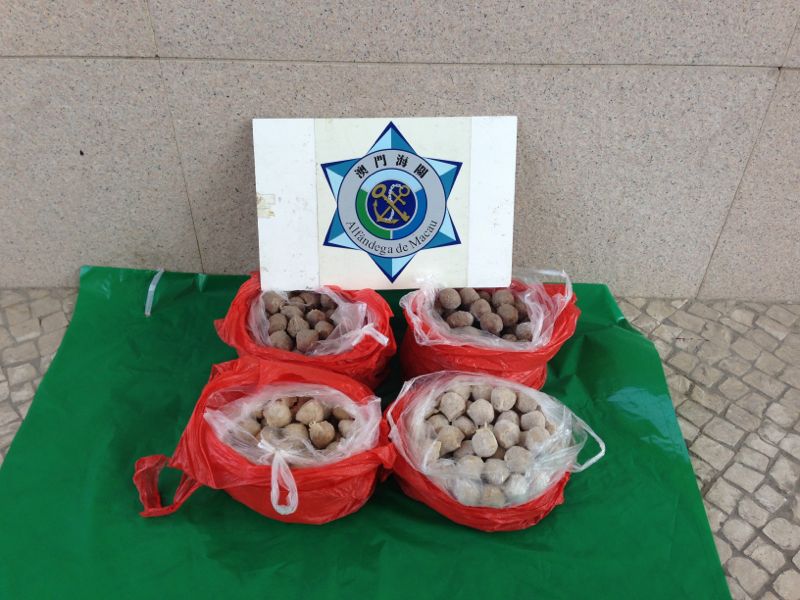 於同日上午11時,關員發現有水客在華大新邨第二街近11號地舖附有一名男子駕駛其電單車到上址整理水客所放下之物品,被本科人員立即進行截查行動,發現一批未經驗疫的肉丸。該名男子聲稱,他受一名男子所託到上址收集該批肉丸,再交往祐漢街市「金x」及「永X」凍肉。事成後便可收取澳門元20元作為酬勞。是次行動,共緝獲各類肉丸共16公斤。