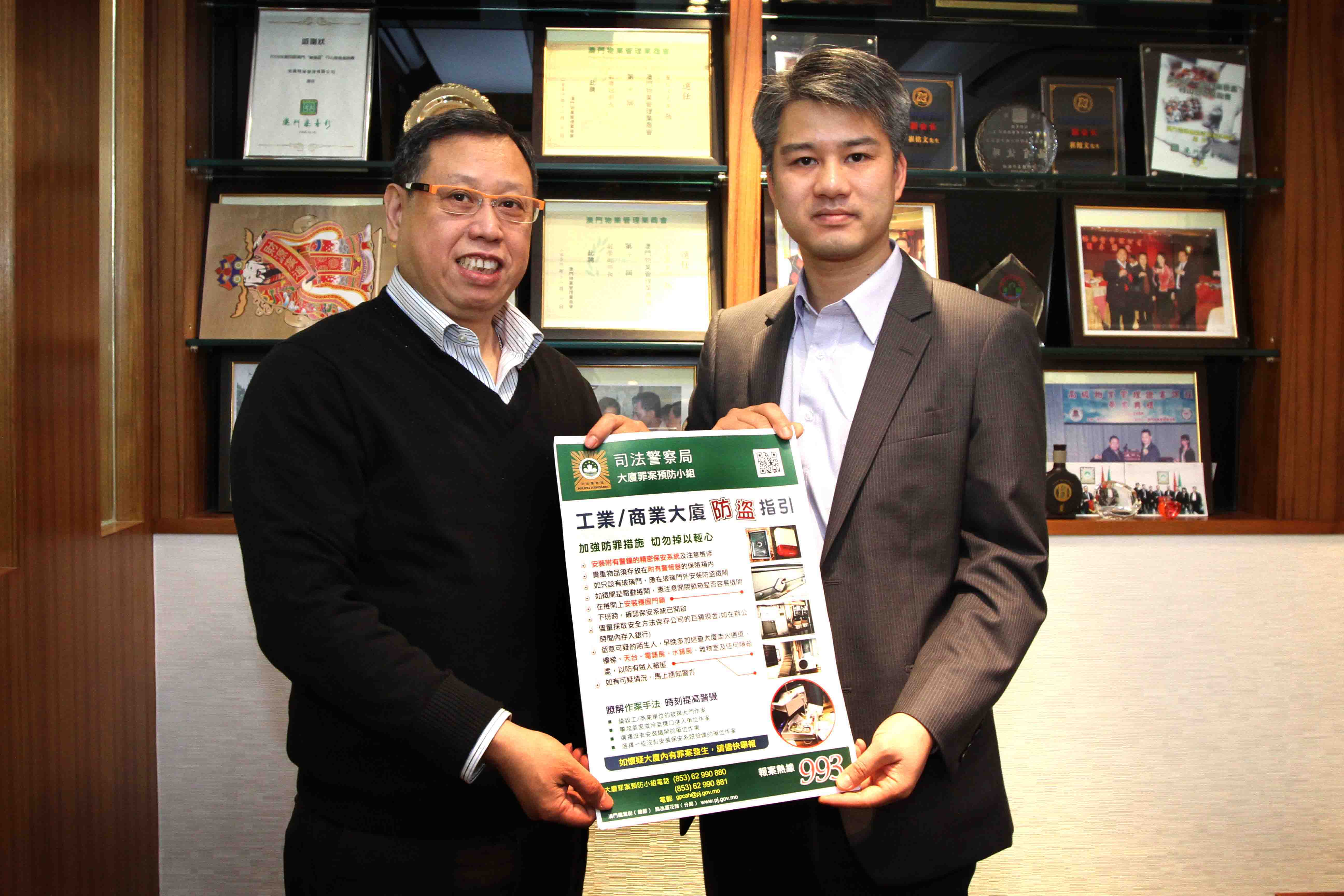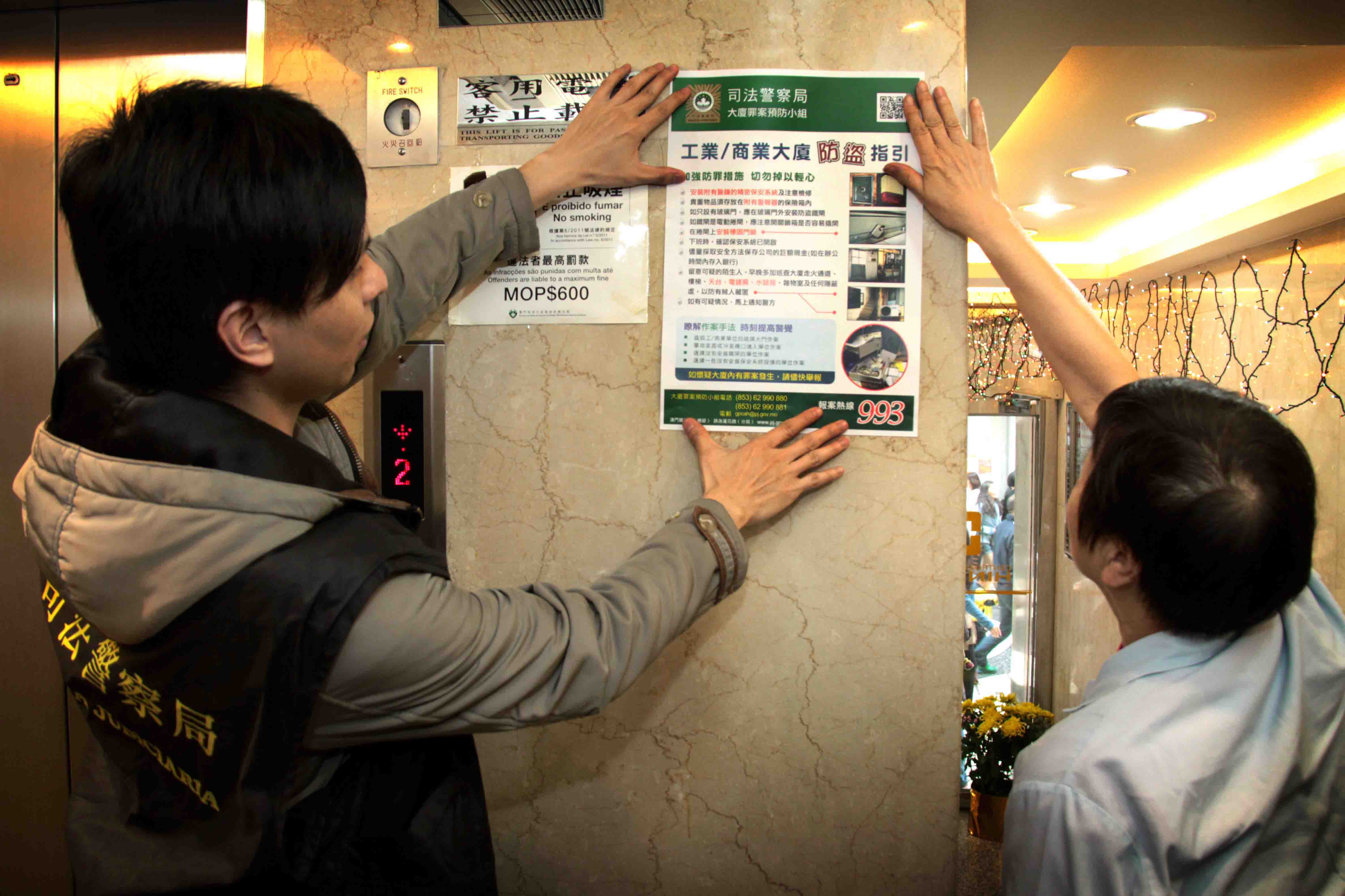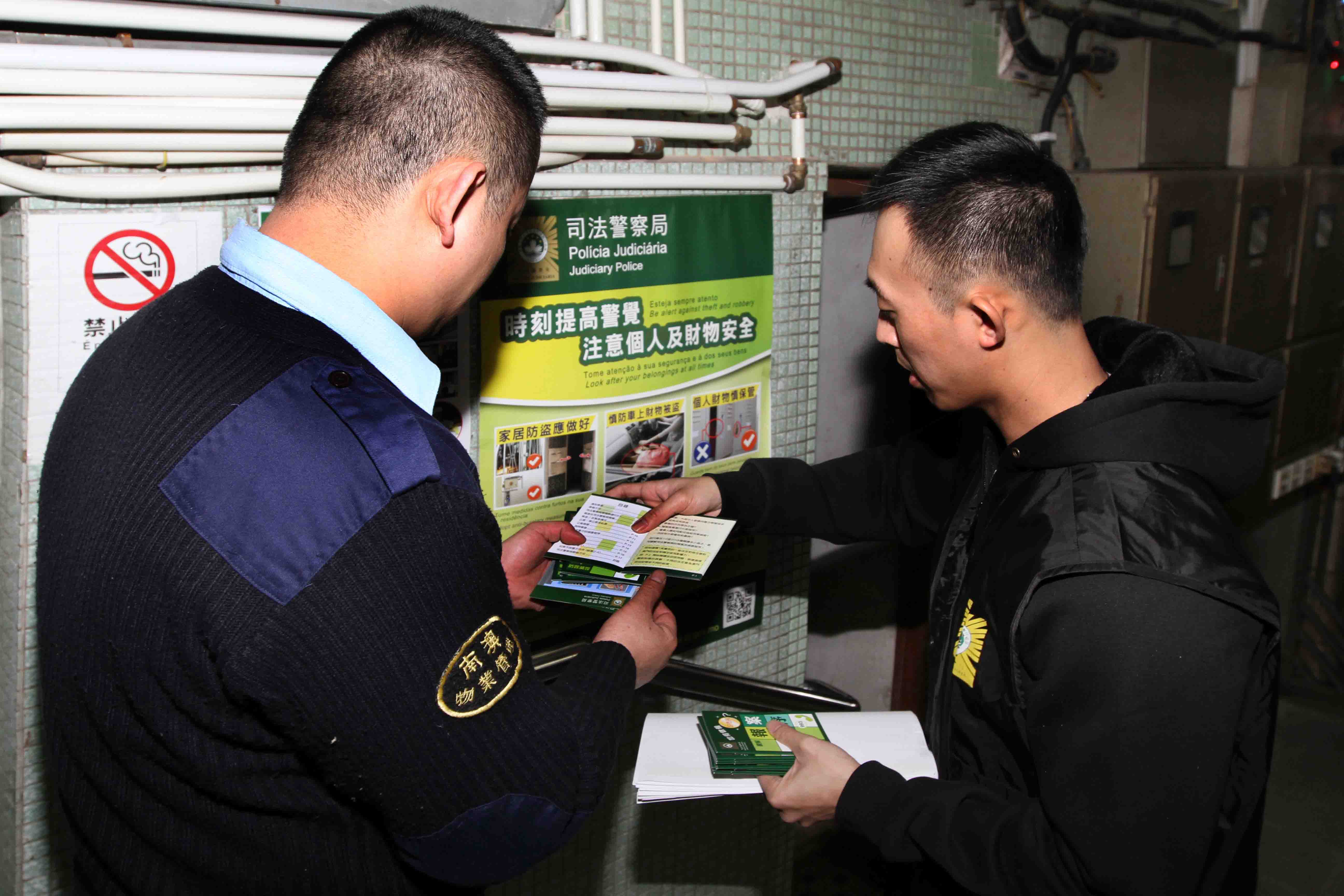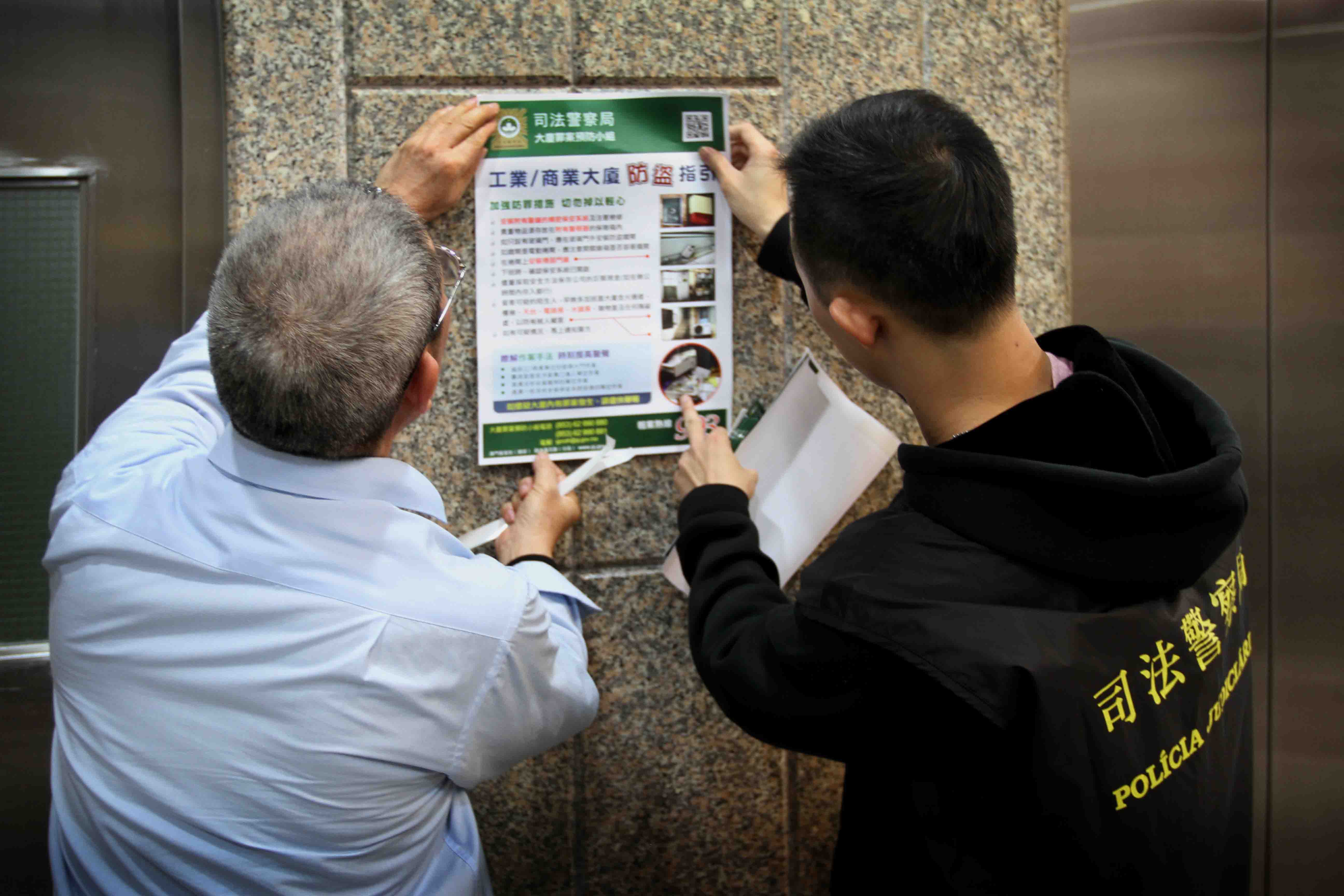 農曆新年臨近,不少商業機構、商舖陸續放年假而一連多天暫停營業,在此期間,賊人可能四出伺機作案,同時,因應去年商業大廈盜竊案件趨增,為提醒商戶、物業管理公司和管理員及早作好防範,以減少罪案發生的機會,司法警察局於春節長假期前夕展開商業及工業大廈防罪宣傳活動。