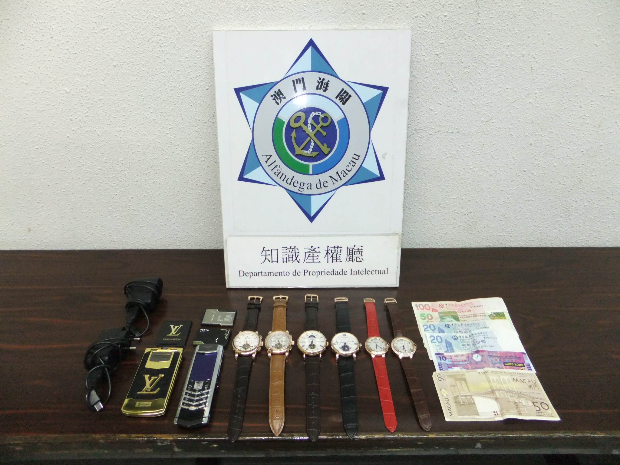 澳門海關與治安警察局繼上月成功搗破一個街頭售假團伙,期後從未鬆懈,持續打擊售賣冒牌侵權物品街頭騙案,不讓犯罪份子有機可乘,以免同類型案件死灰復燃。於本四月三日,一男子在澳門新口岸區被拘捕,在其身上及隨身斜揹袋中查獲涉嫌侵權偽冒的手錶六隻及手提電話兩部,在轉交海關知識產權廳調查後,初步證實全為「山寨」貨品,並揭發其藉以旅客身份來澳作案,失手被擒。