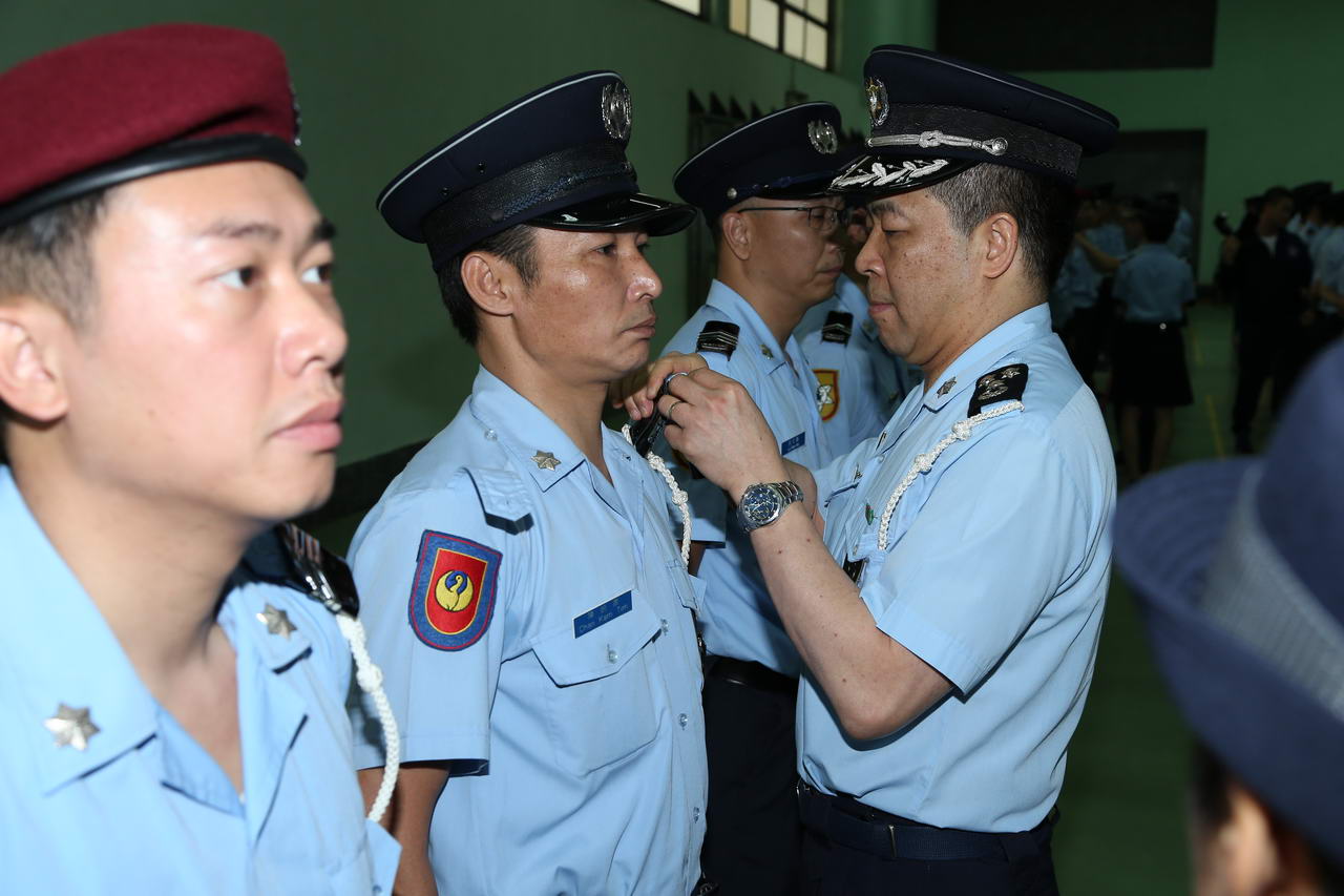 今天(二十九日)中午12時,在特警總部室內運動場舉行了晉升首席警員晉升儀式。儀式由治安警察局局長李小平警務總監、副局長黎錦權及梅山明副警務總監主持。出席儀式的還有局內各部門的廳長及負責人,為同僚作出祝賀。