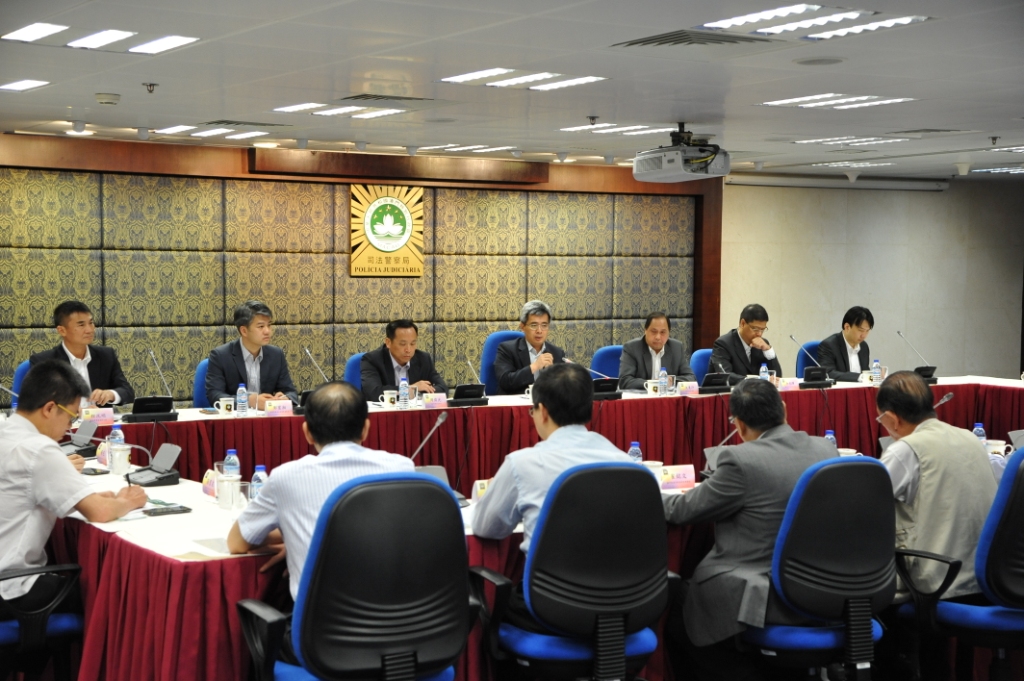 5月23日下午,澳門物業管理業商會會長劉藝良、理事長崔銘文,澳門物業管理專業人員協會副會長崔紹文,街總大廈工作委員會主任黃祖添及大廈管理資源中心主任秦昶等一行多人拜訪司法警察局,與局長黃少澤、副局長周偉光、多名廳處級主管及大廈罪案預防小組隊長進行季度性治安交流會議。