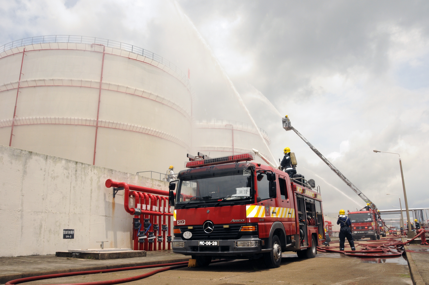 為加強路環九澳油庫在發生事故時的應急工作及協調溝通,澳門消防局於本年05月24日上午11時,協助澳門油庫管理有限公司在路環九澳油庫內舉行了一次火警疏散演習。