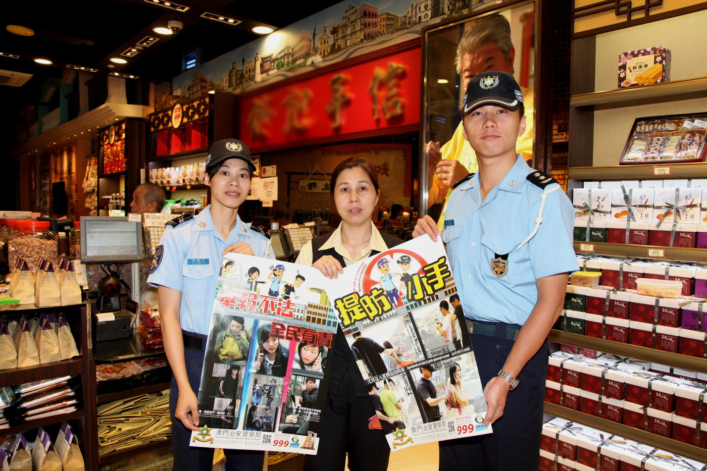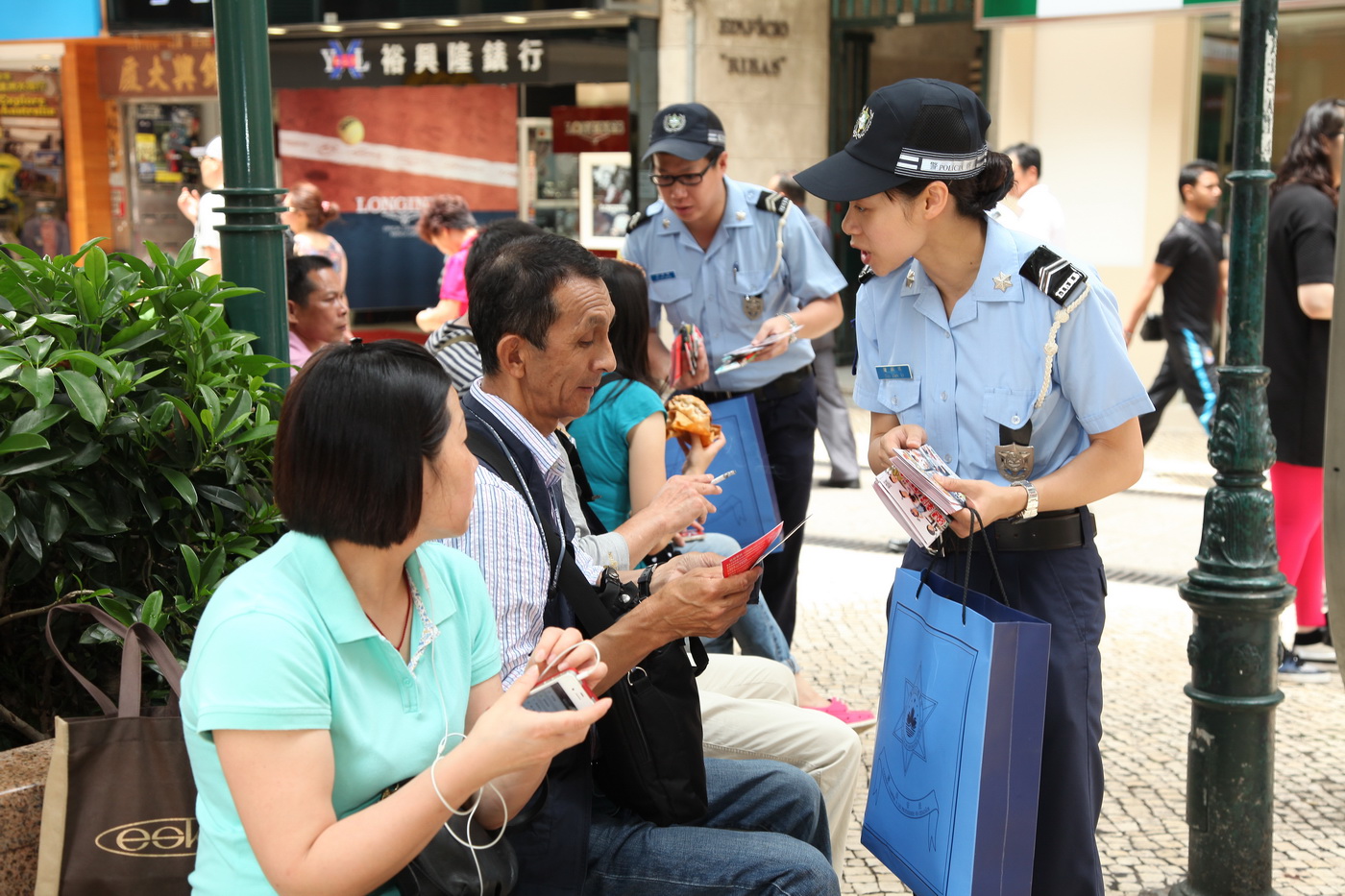 鑒於端午節假期將至,市面人流一片暢旺,竊匪容易伺機作案,本局於今早到媽閣及新馬路一帶進行防扒宣傳活動,為向居民、遊客及商戶宣傳防盜訊息,提升防罪意識,歡度假期。