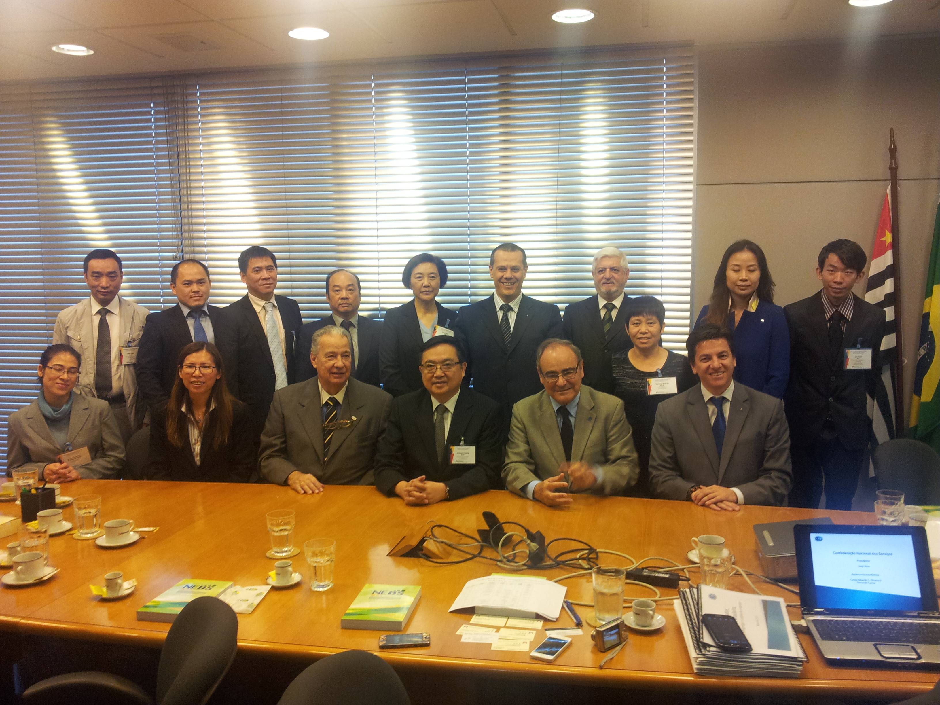 代表團在巴西聖保羅考察期間,分別拜訪了當地的巴西服務聯盟(CNS)及巴西聖保羅商會。於拜訪CNS期間,該聯盟主席Luigi Nese介紹了巴西服務業的最新情況及行業發展前景,並提出澳門與巴西共同合作發展服務及旅遊業之契機。此外,代表團亦拜訪了巴西聖保羅商會,獲Luiz Roberto Gonçalves副主席及該會的領導代表接見。期間,該會Ulisses R. M. Gamboa經濟師向代表團介紹了巴西的經貿發展情況。