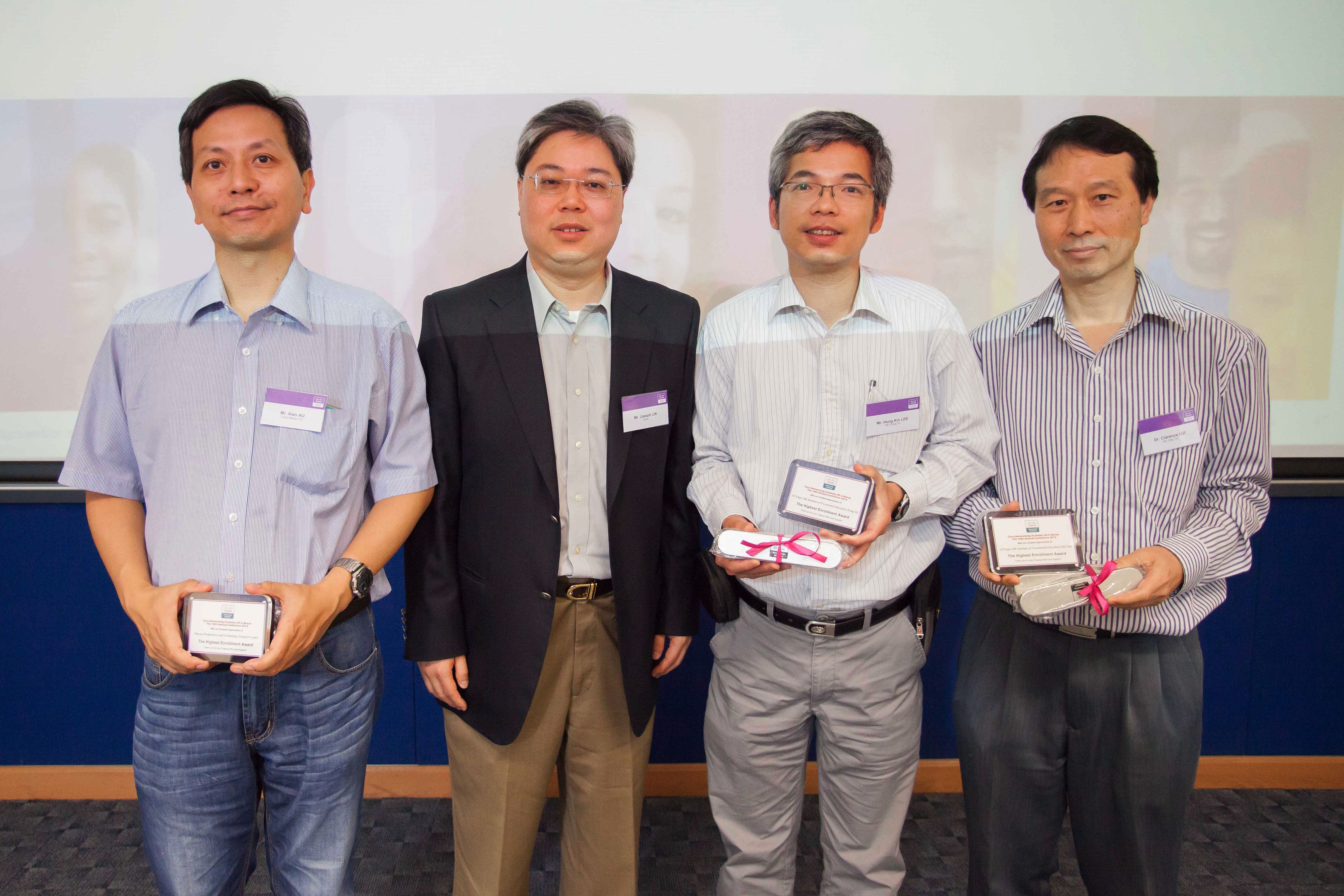 香港澳門思科網路學院向澳門生產力暨科技轉移中心頒發港澳區「最高收生奬」三甲獎,表揚該組織在培訓網路科技人才所作的努力和貢獻。