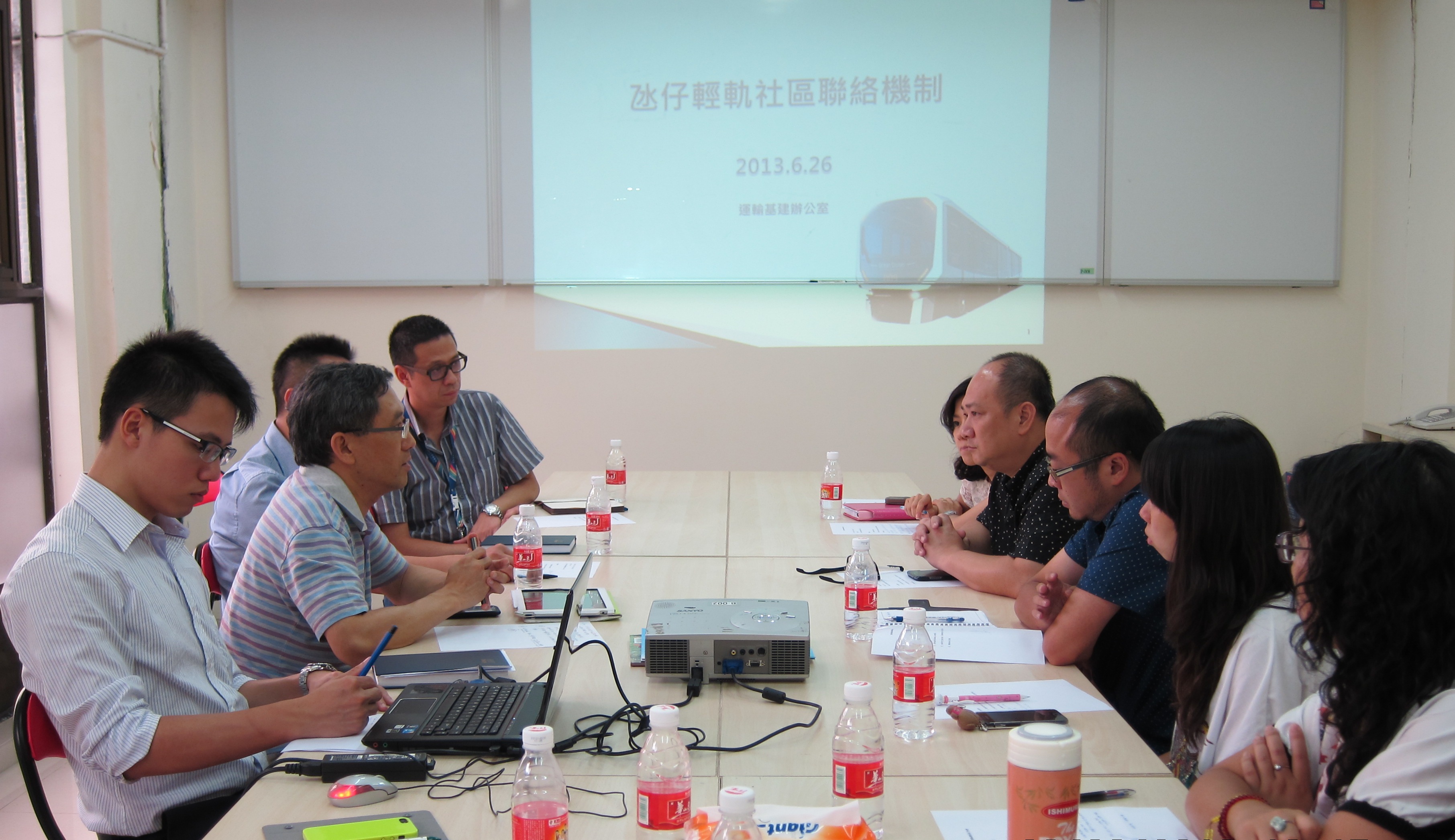 在聯絡會議上,運輸基建辦公室代表重點介紹了在柯維納馬路的輕軌、交通樞紐及下水道工程的興建狀況。其中,柯維納馬路工地範圍內加駁臨時支渠的工作已在6月初完成,而政府正要求柯維納馬路旁的私人項目發展單位盡快交還臨時借用的公共道路,以配合新渠網的興建工作。隨著工程進一步推展,柯維納馬路名門世家對出的東行線將陸續調整為單線行車,至於賽馬會西側的臨時道路開闢工作也已展開。