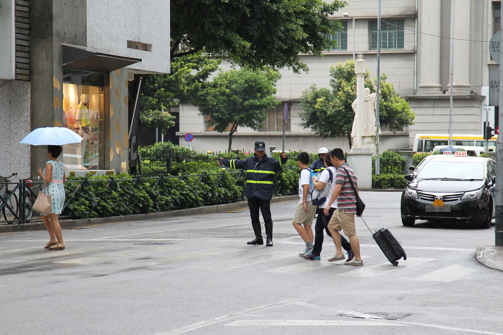 本局與交通事務局針對近期社會關注之駕駛者於斑馬線不讓行人優先通行之情況,繼續展開檢控及宣傳的聯合行動,兩局互相合作各施其職,安排前線巡邏警員於繁忙路段之斑馬線指揮交通,加強檢控於斑馬線前違規之行人及駕駛者,而交通事務局則派出交通督導員向行人宣傳使用行人過路設施,期望以宣傳教育和懲處相結合,提升市民交通安全意識和重視。從而減少交通意外的發生。繼早前兩次的聯合行動,效果理想,今日早上十一時兩局於蘇亞利斯博士大馬路一帶進行交通安全行動,而打擊違規行動將持之以恆於定期不定點方式進行,以維護居民的出行安全。