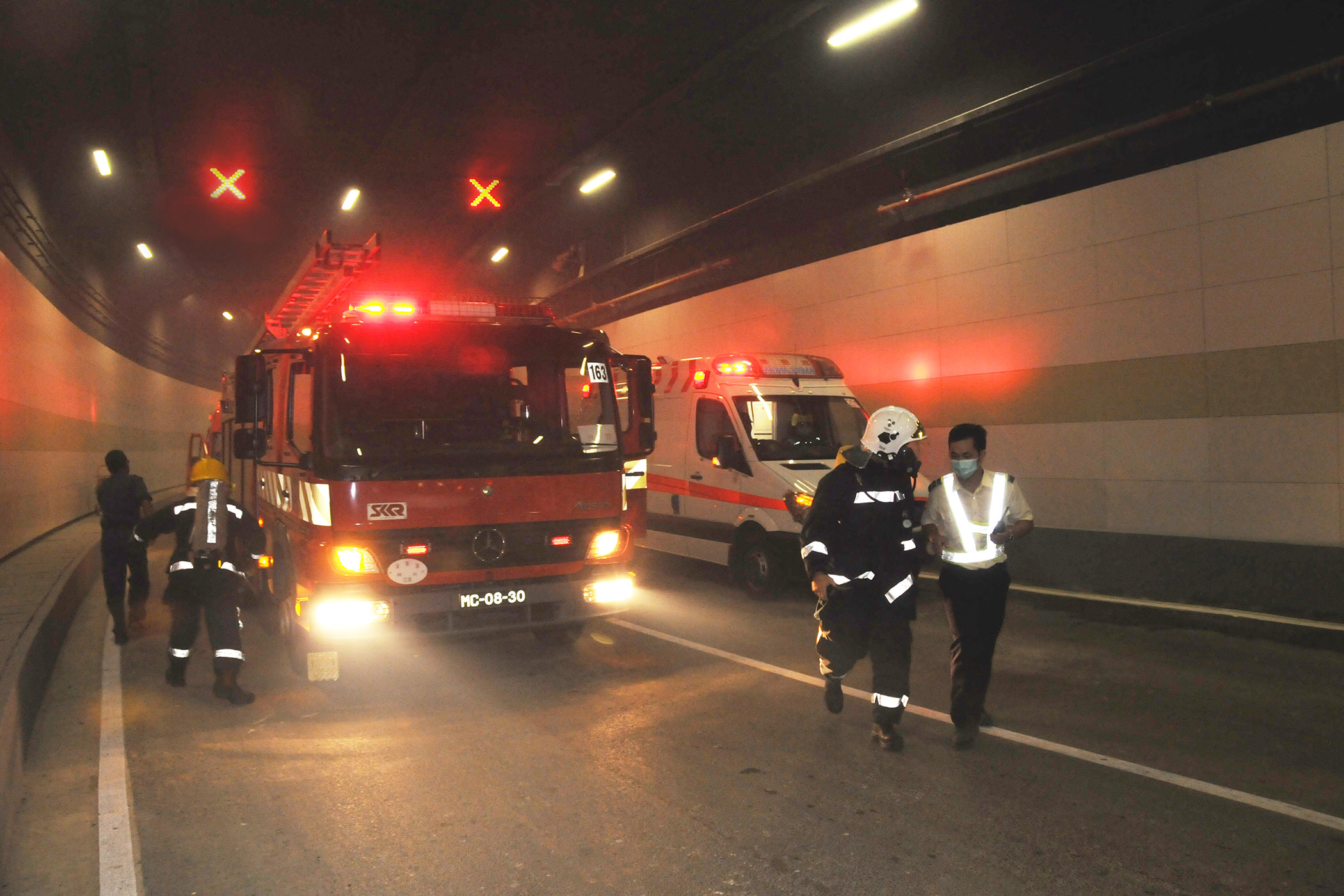 於2013年8月20日上午11時,消防局聯同治安警察局和現時河底隧道管理單位在橫琴澳大校區河底隧道舉行交通意外火警拯救演習。