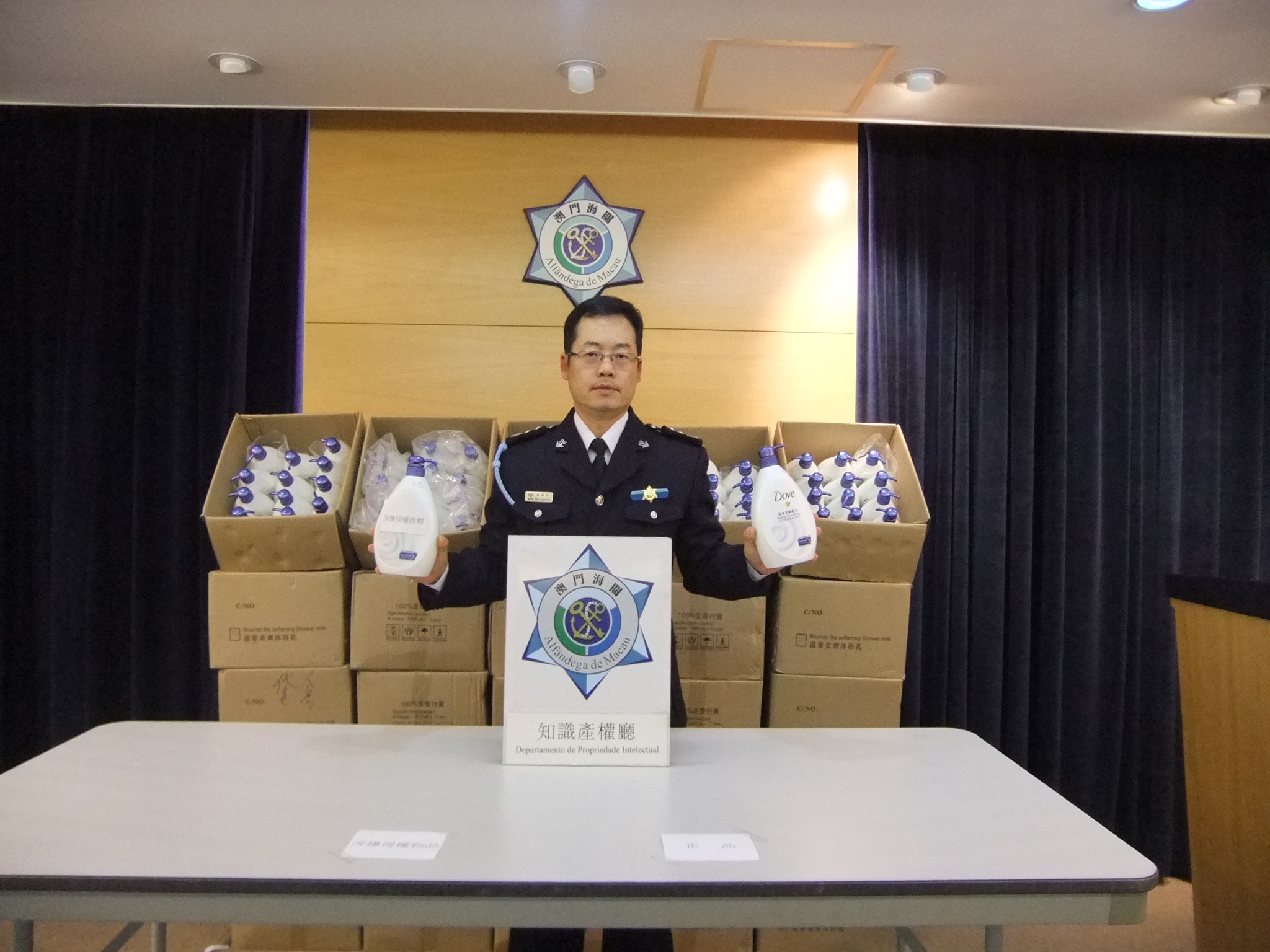 『誰說澳門沒有山寨貨,我就在澳門買了,請大家小心一點』。 澳門海關近月收到消費者委員會多宗轉介投訴,並接二連三在內地網站瀏覽搜索到有關訊息,指澳門有多間藥房涉嫌售賣疑似「Dove」沐浴乳之“山寨”貨品。海關知識產權廳隨即展開深入調查,於本月十二日迅速採取行動,在位於澳門北區及中區世遺遊客區內,一舉徹查相關店舖,行動中共查封了涉嫌售賣侵權沐浴乳的藥房五間及貨倉一間,扣查涉嫌假冒沐浴乳共一千四百三十支,三男五女被帶返海關總部協助調查,並移送檢察院偵辦。