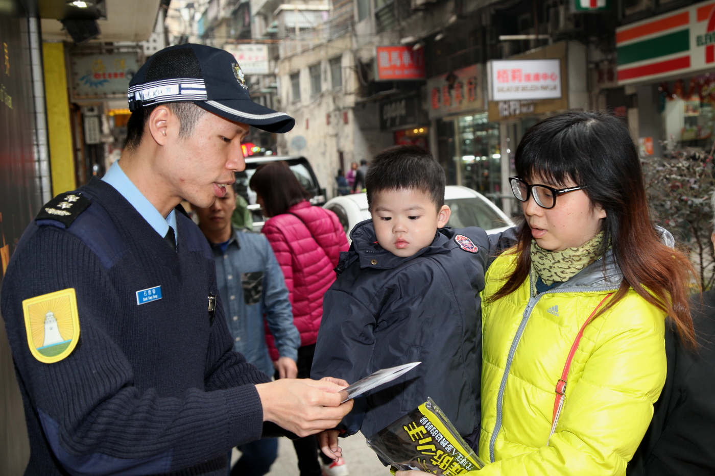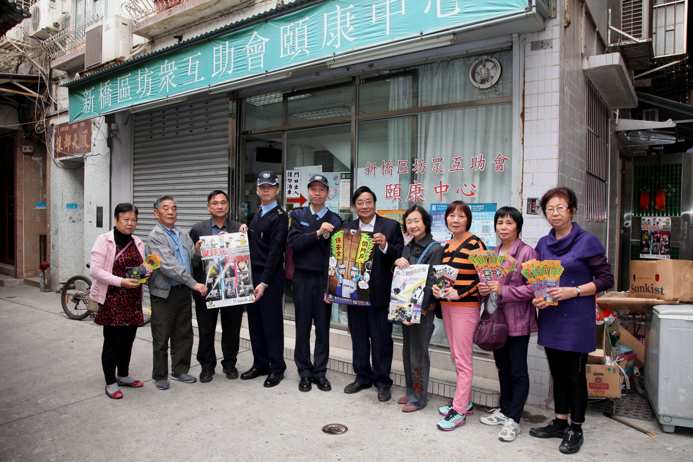 昨日上下午分別落區進行的宣傳活動,由本局公關處和澳門警務廳多位警官組織,獲提柯區坊會和新橋坊會的負責人黃祖添、尹根、羅寶泉和李志遠熱情接待,並派出義工協助宣傳。