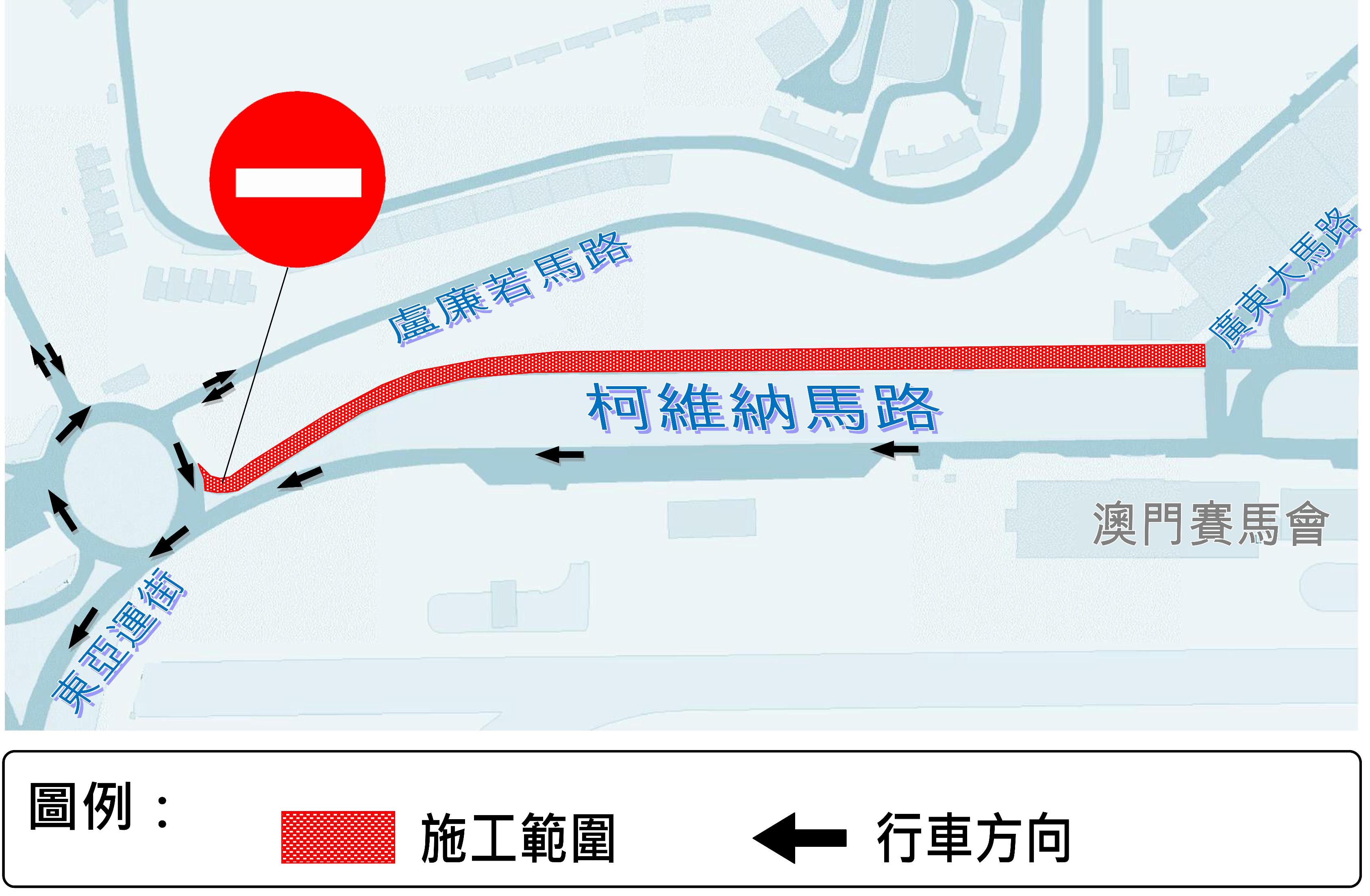 電力公司將於4月1日(周二)起在氹仔柯維納馬路開展電纜穿線工作,由於該路段正進行柯維納交通樞紐工程,現場路面已經收窄,加上該道路為氹仔主要幹道之一,為減低對公眾和交通的影響,相關工程將安排於夜間非繁忙時段進行。配合相關工程,氹仔柯維納馬路往廣東大馬路方向(即名門世家對出),由4月1日至9日,每日凌晨零時30分至清晨6時30分會臨時封閉交通。