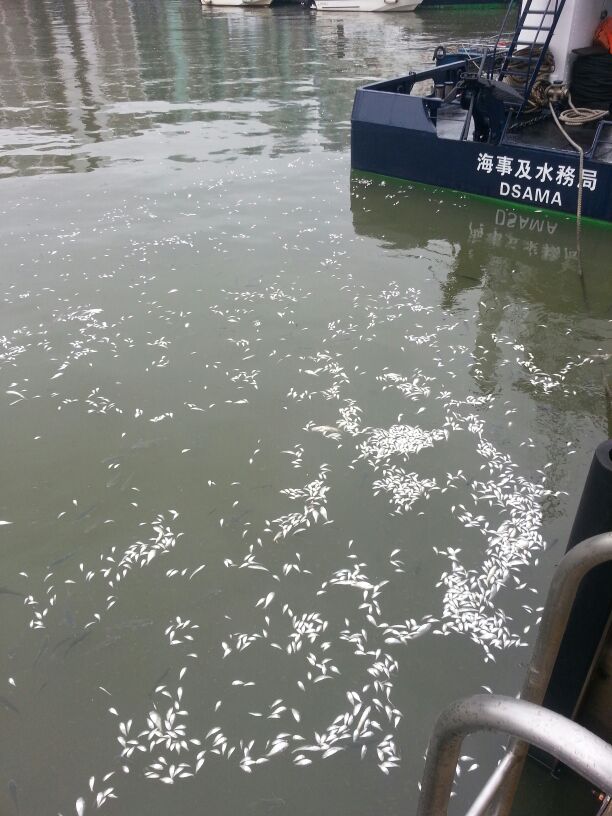 海事及水務局今早於筷子基北灣和青洲塘河面發現大量死魚,隨即啟動聯合應變機制,即時派員到現場清理死魚,以保持河面環境清潔,環境保護局亦已立即派員跟進和到現場調查。