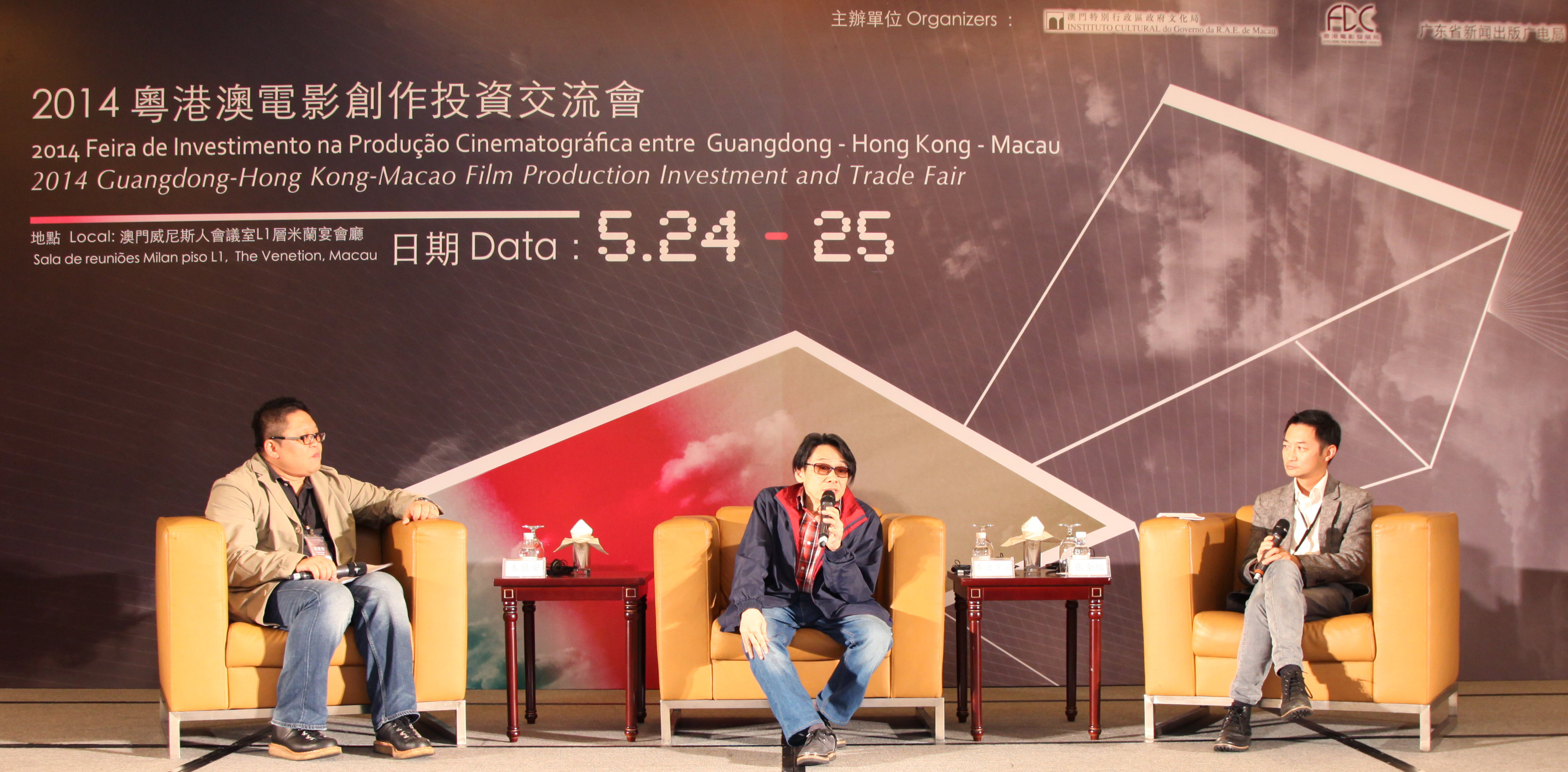 澳門文化局、香港電影發展局及廣東省新聞出版廣電局日前(五月二十四日及五月二十五日)在澳門威尼斯人度假村酒店金光會展聯合主辦“二零一四粵港澳電影創作投資交流會”(下稱“創投會”),澳門、香港和廣東省的電影工作者和投資方齊聚本澳,加強雙方的交流聯繫及尋求合作機會。