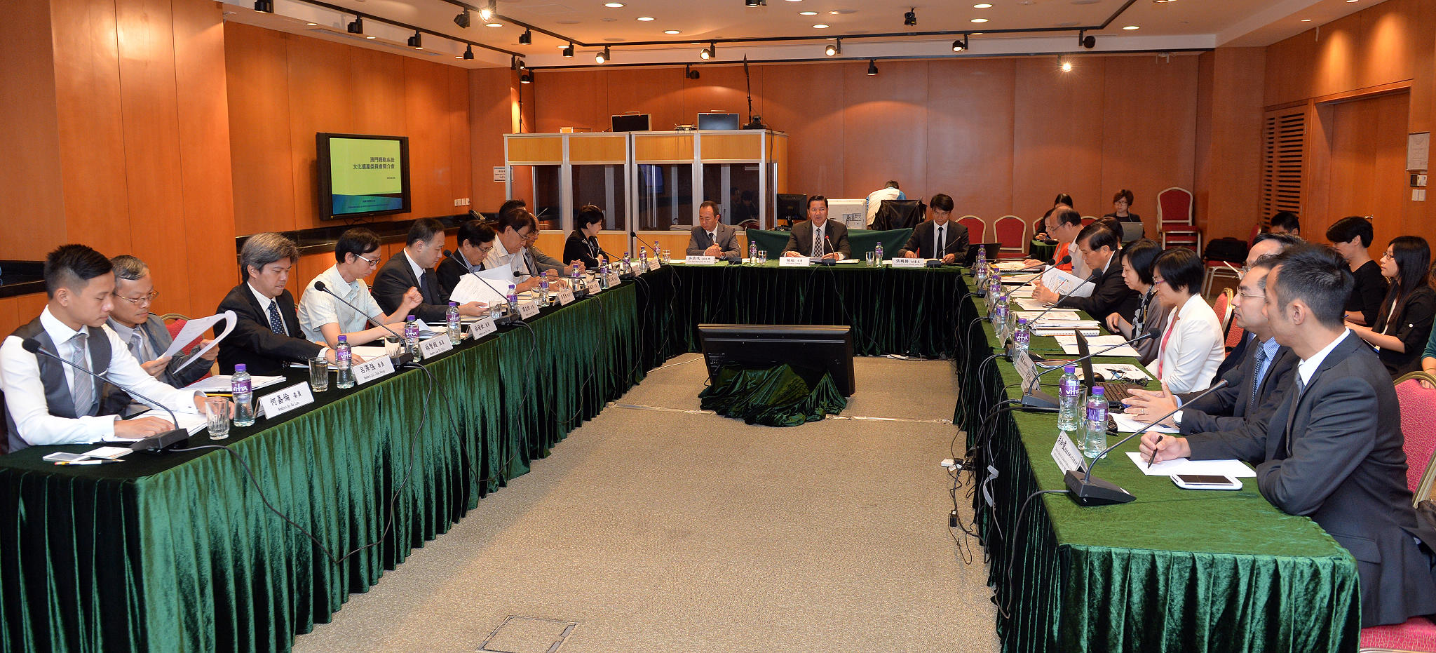 文化遺產委員會主席張裕、文化遺產委員會副主席吳衛鳴、文化遺產委員會秘書長張鵲橋、社會文化司司長辦公室代表林韻妮、法務局局長代表梁美玲、民政總署管理委員會主席代表馬錦強、土地工務運輸局局長代表劉榕、文化遺產委員會委員劉永誠、劉哲明、鄭國強、李萊德、李業飛、湯開建、譚志煒、林發欽、呂澤強、林智超及何嘉倫出席了文化遺產委員會“二零一四年第三次平常全體會議”。