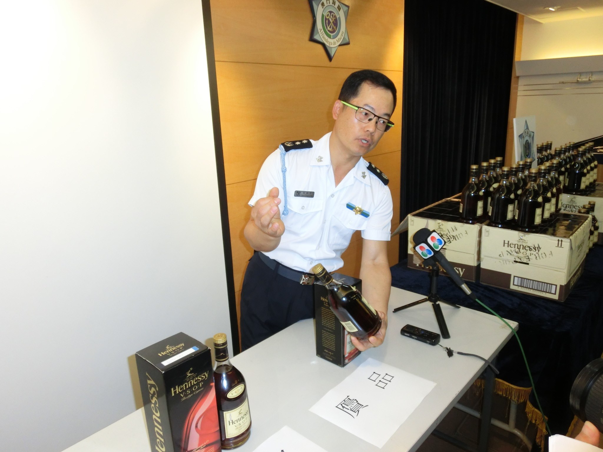 海關知識產權廳偵查人員根據舉報資料,對目標店舖進行不定期監視,以搜集證據。於七月十五日對相關店舖採取巡查行動。在獲得品牌權利人代表在現場的協助下,即場對該舖所出售的洋酒作出鑑定真偽工作,海關偵查人員在搜查過程中,發現該店玻璃櫃內及存貨點有一批懷疑假冒洋酒,合共六十四支。該批涉案洋酒的酒瓶及酒蓋明顯有重復使用的跡象,且瓶口的標籤也出現重復使用的皺紋。經權利人代表即場鑑定後,確定該店舖及儲存點內的六十四支「HENNESSY」VSOP洋酒為贗品,涉案兩名女嫌犯均姓吳,兩人屬姐妹關係,是店舖東主及售貨員,年齡為六十一歲及六十七歲,均為本地居民。據初步調查,該批洋酒的入貨價格為毎支三百八十元澳門元,零售價則為四百八十元澳門元。海關將以第九七/九九/M號法令《工業產權法律制度》第二百九十二條(將產品或物品出售、流通或隱藏),並送交檢察院處理,一經定罪,將處以最高六個月徒刑或科處三十日至九十日罰金。