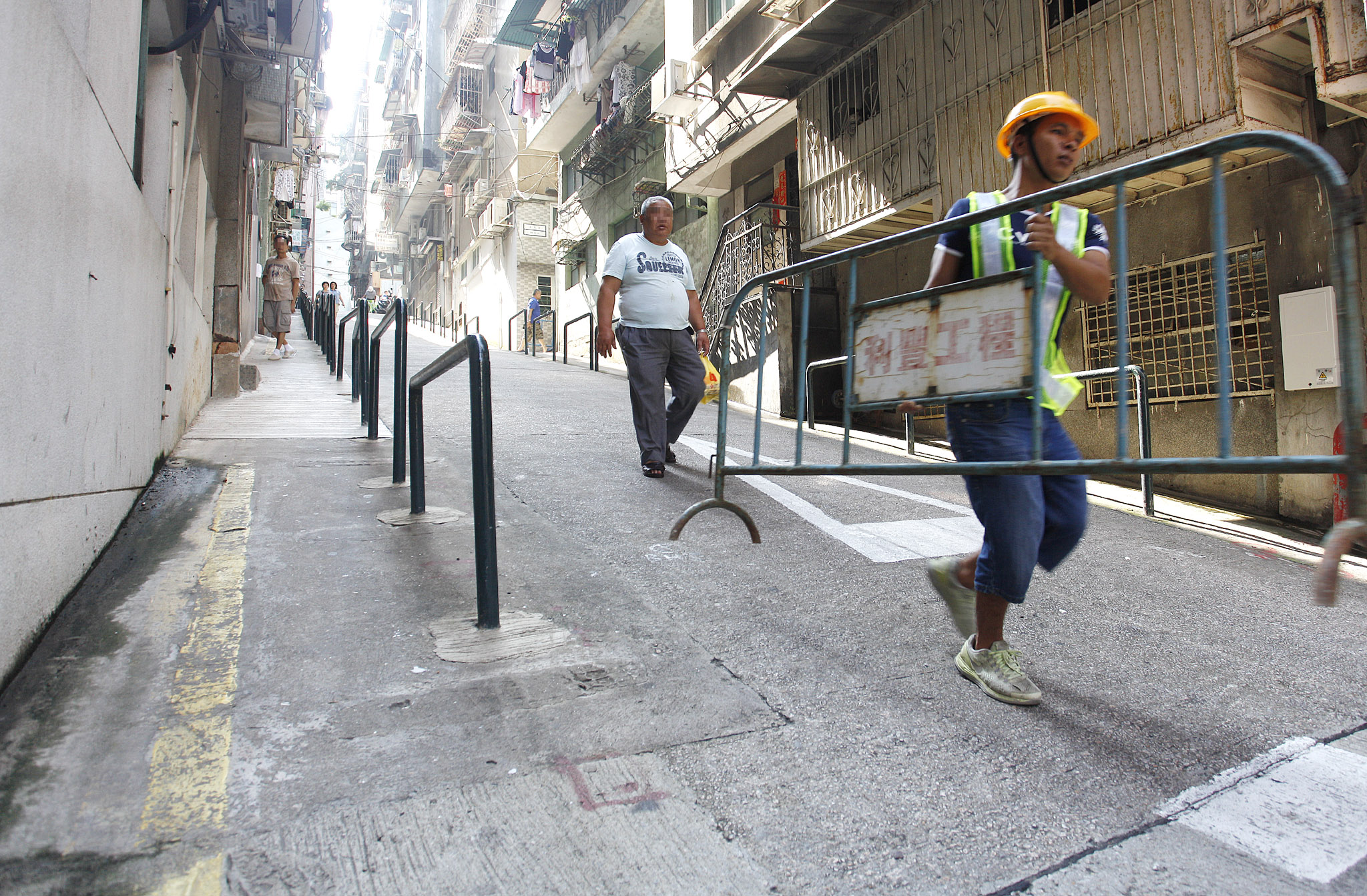 配合特區政府致力創造便捷步行環境的規劃,並因應愕斜巷升降機啟用後帶動人流增加,經聽取居民及商戶意見後,政府將於較為陡斜難行的愕街設置自動扶梯系統,方便居民出行。有關工程今天(9月19日)早上10時起動工,工期約450日。為減低對周邊居民的影響,工地兩旁設置圍板分隔工地與行人,並要求施工單位做好工地的防污措施;配合工程展開,愕街將改為禁止車輛通行,車輛可經由巴冷登街前往馬大臣街。