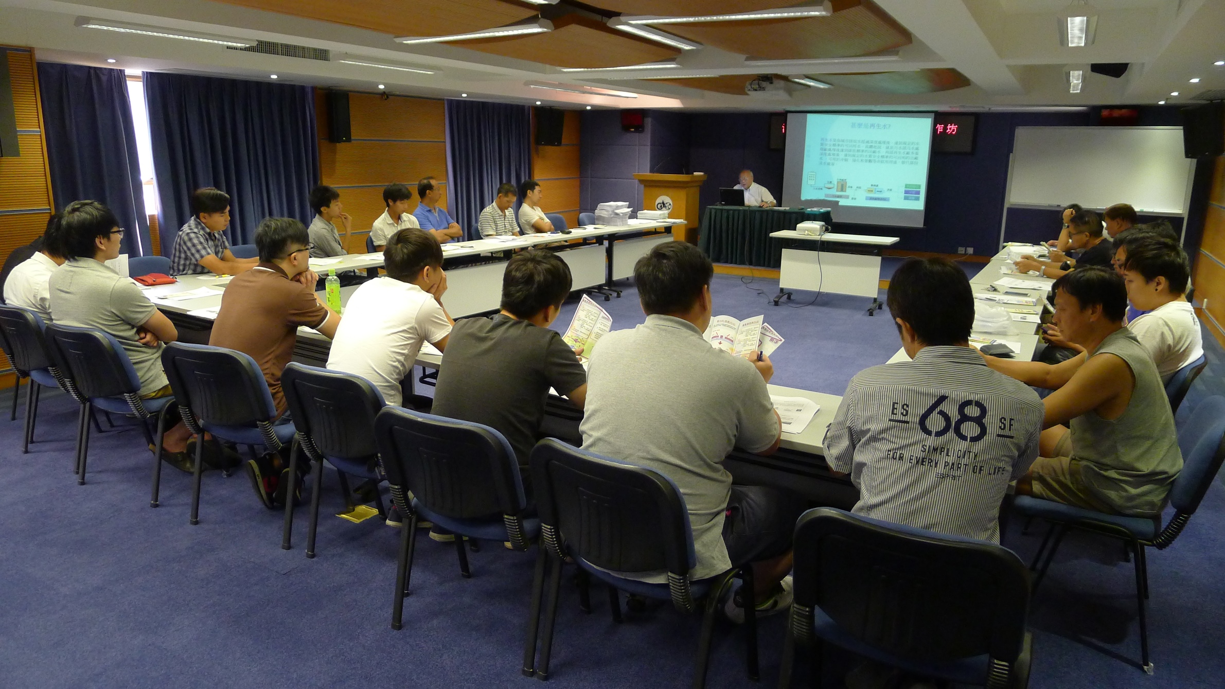 由於特區政府現正積極開發利用再生水,導師向學員介紹了本澳再生水利用的參考標準,包括再生水用途及水質標準、管材的選用、再生水管鋪設與安裝重點及注意事項、識別方式等,使學員了解再生水和自來水供水系統之間的區別。導師亦透過建築物供水圖則的實例分享,讓學員認識建築物內的供水系統圖則的讀圖方式。