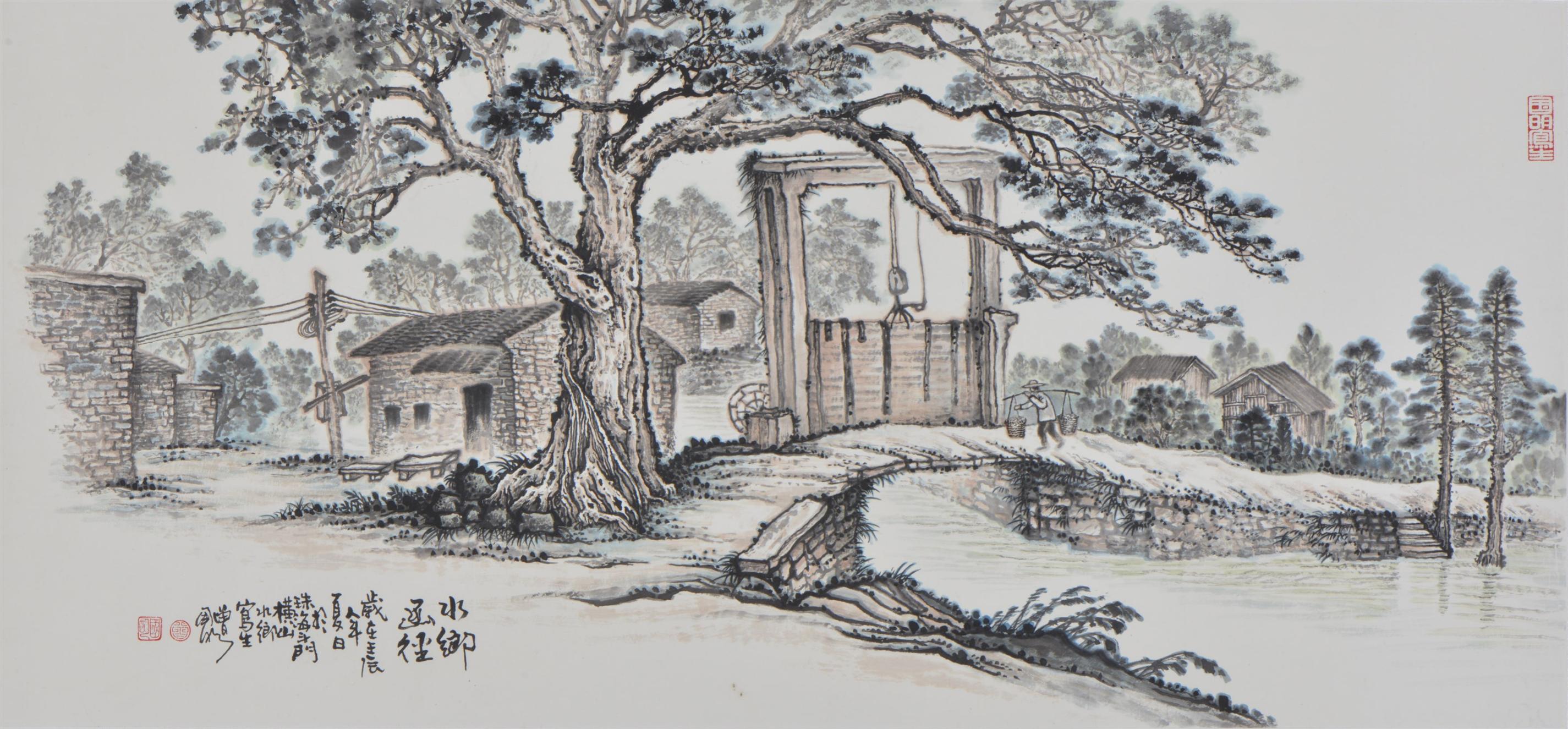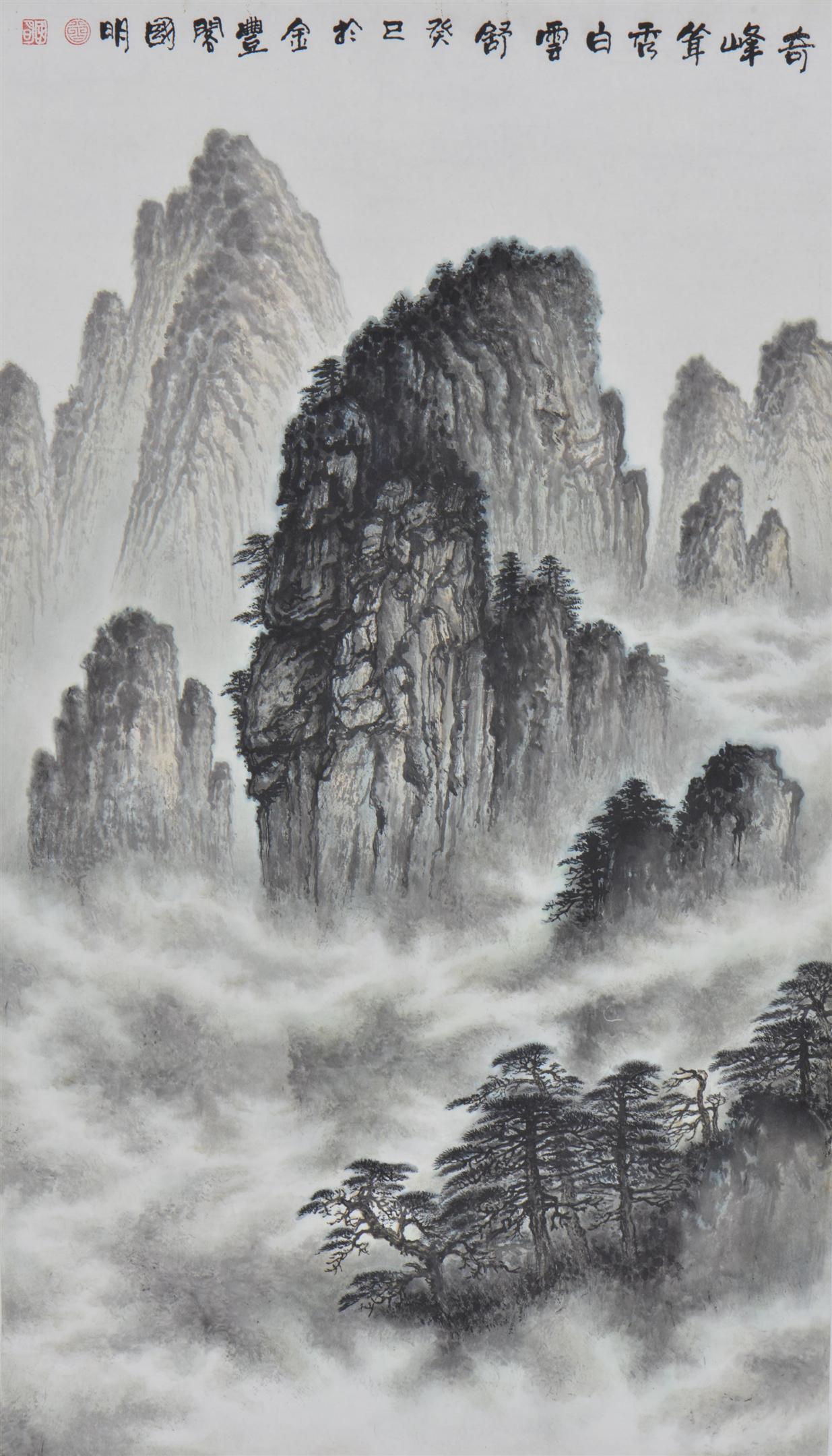 所謂“仁者樂山,智者樂水",曾國明的山水將傳統和自然的造化,皆融入精神之中,他的畫無疑予人看到中國畫線與點的魅力。其喜以鋼筆對花卉寫生,花瓣中筋脈,疏密有序,走向自然且忠實於對象的固有結構,故其花卉鮮艷且生氣盎然。