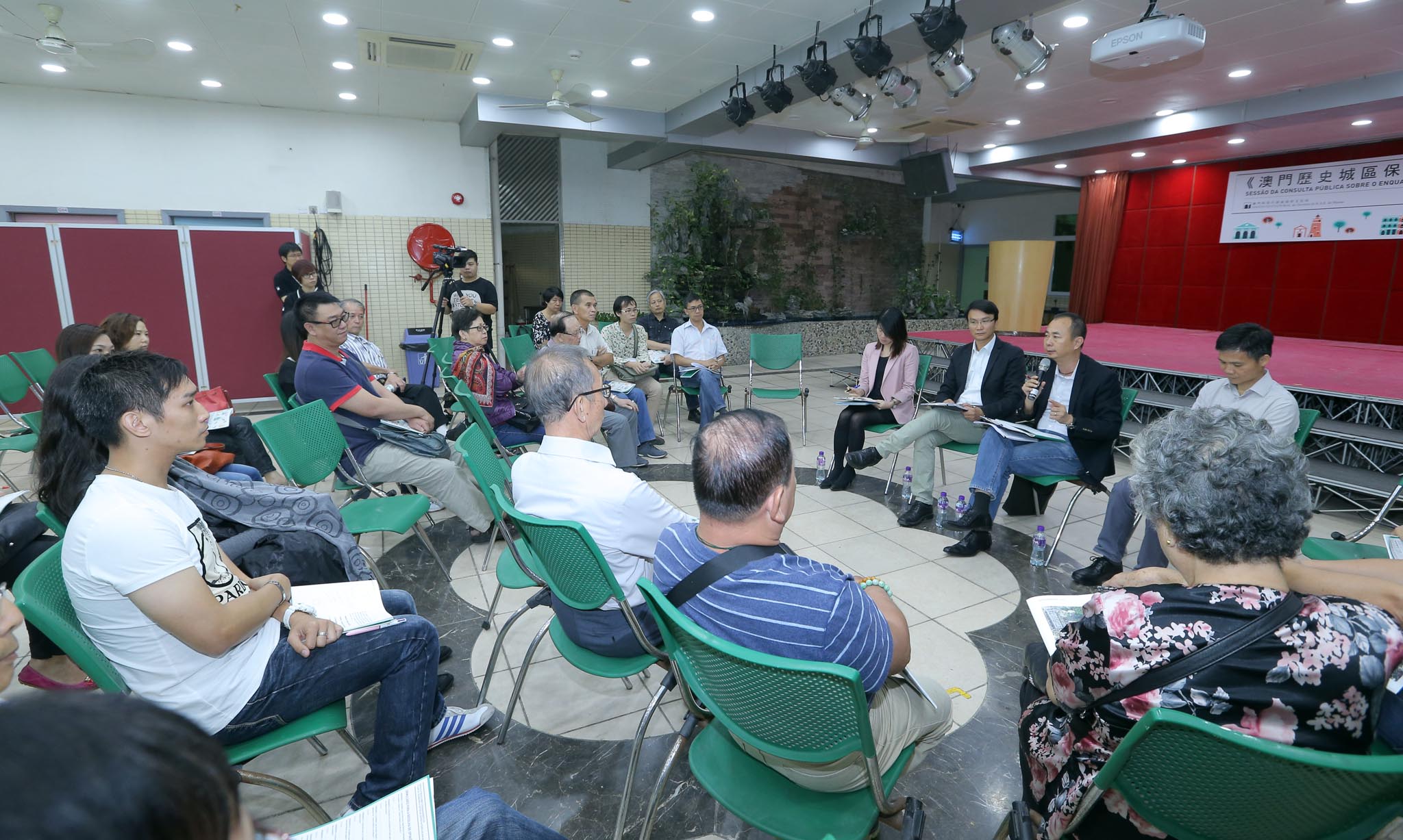 為廣泛聽取公眾意見,集思廣益,文化局就《澳門歷史城區保護及管理計劃》框架舉行公眾諮詢會,向巿民大眾諮詢及講解文本內容。首兩場公眾諮詢會已於十月二十五及二十六日舉行。
